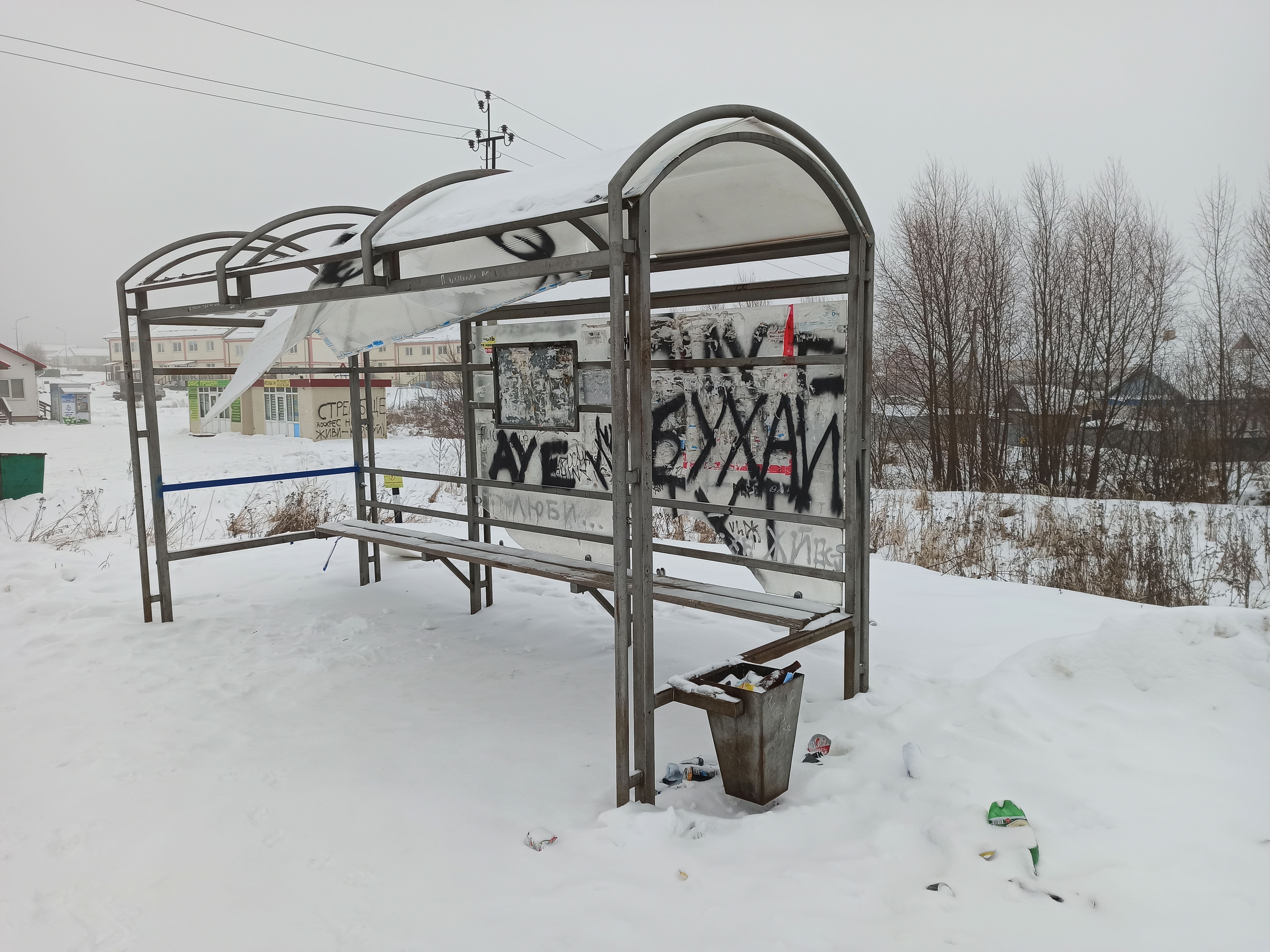 Остановочный павильон в Центральном микрорайоне недавно разгромили вандалы. Остановка в Южном выглядит получше, но ненамного.