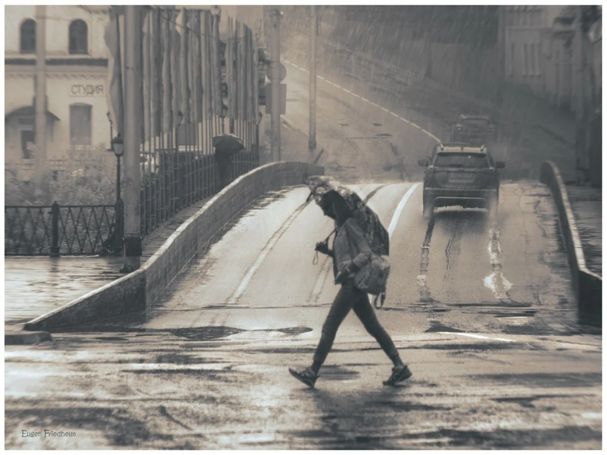 - Если снимать достопримечательности, «открыточные виды», то этот момент наступает быстро. Есть миллионы снимков вида из парка на мост или вида с моста на город. Они могут различаться временами года и освещенностью, но в принципе все они одинаковы. А если стараться увидеть в этих исторических декорациях какие-то сюжеты, то они каждый раз будут разные. Почему я увлекся уличной фотографией? Потому что на одном и том же месте, если повезет, можно снять множество историй.