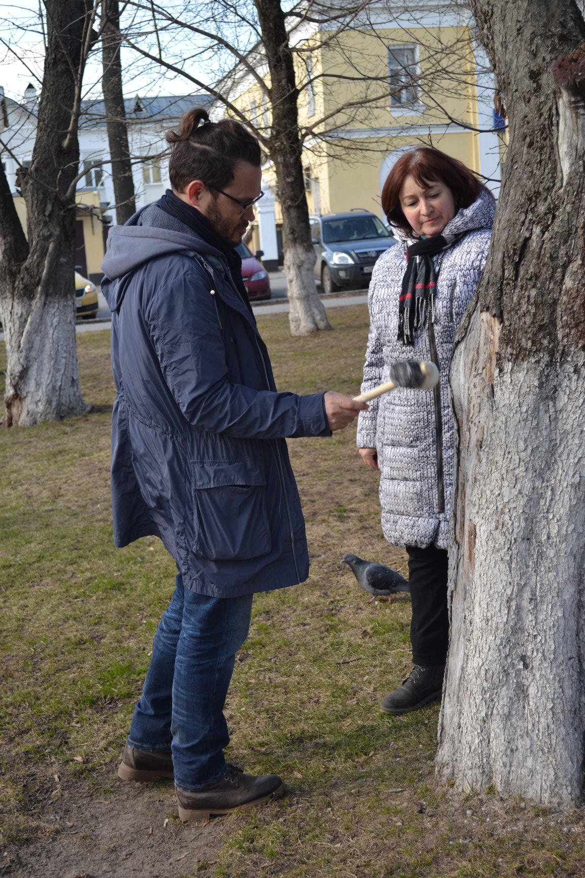 Людмила Дорофеева и арборист Дмитрий Звонка обследуют деревья в Калуге.