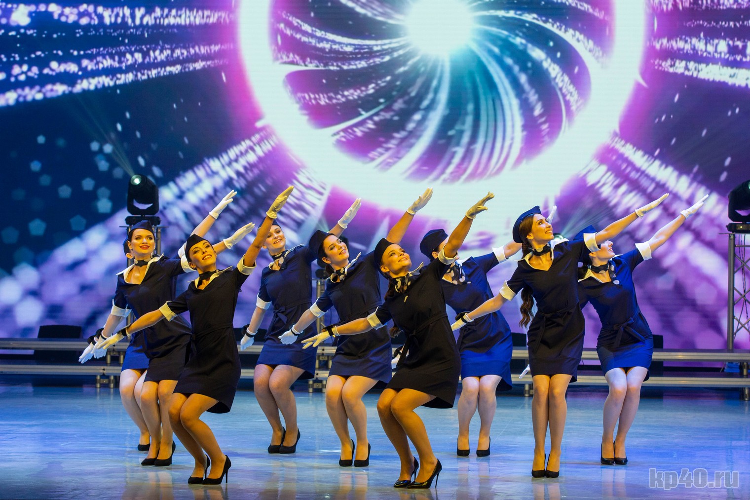 Вместо стандартных офисных костюмов девушки вышли на сцену в очаровательных костюмах стюардесс, что произвело фурор на сидящих в зале мужчин. Выглядело впечатляюще.