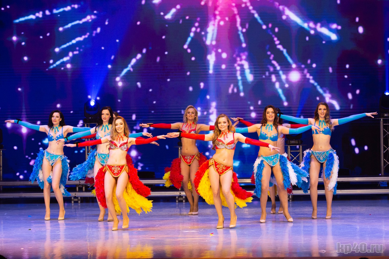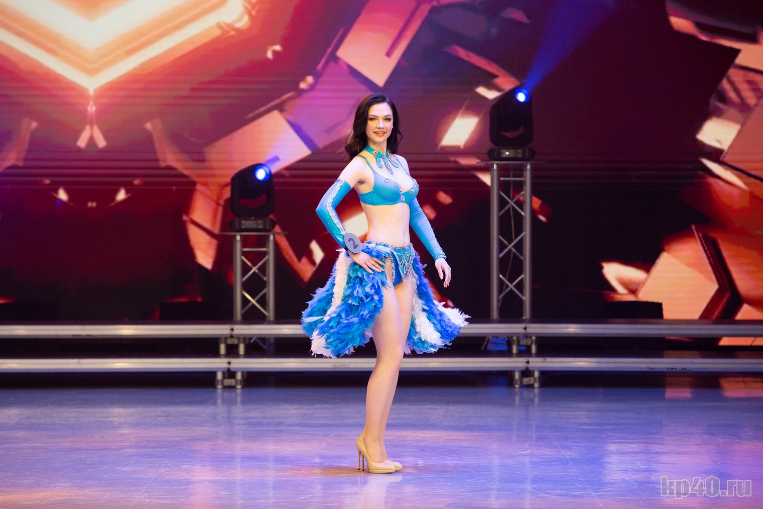 Самая жаркая часть шоу прошла во второй половине конкурса. Дефиле в купальниках вышло энергичным и бодрым. Девушки показали отличные фигуры в красных и голубых откровенных костюмах с набедренными повязками, дополняющими образ.