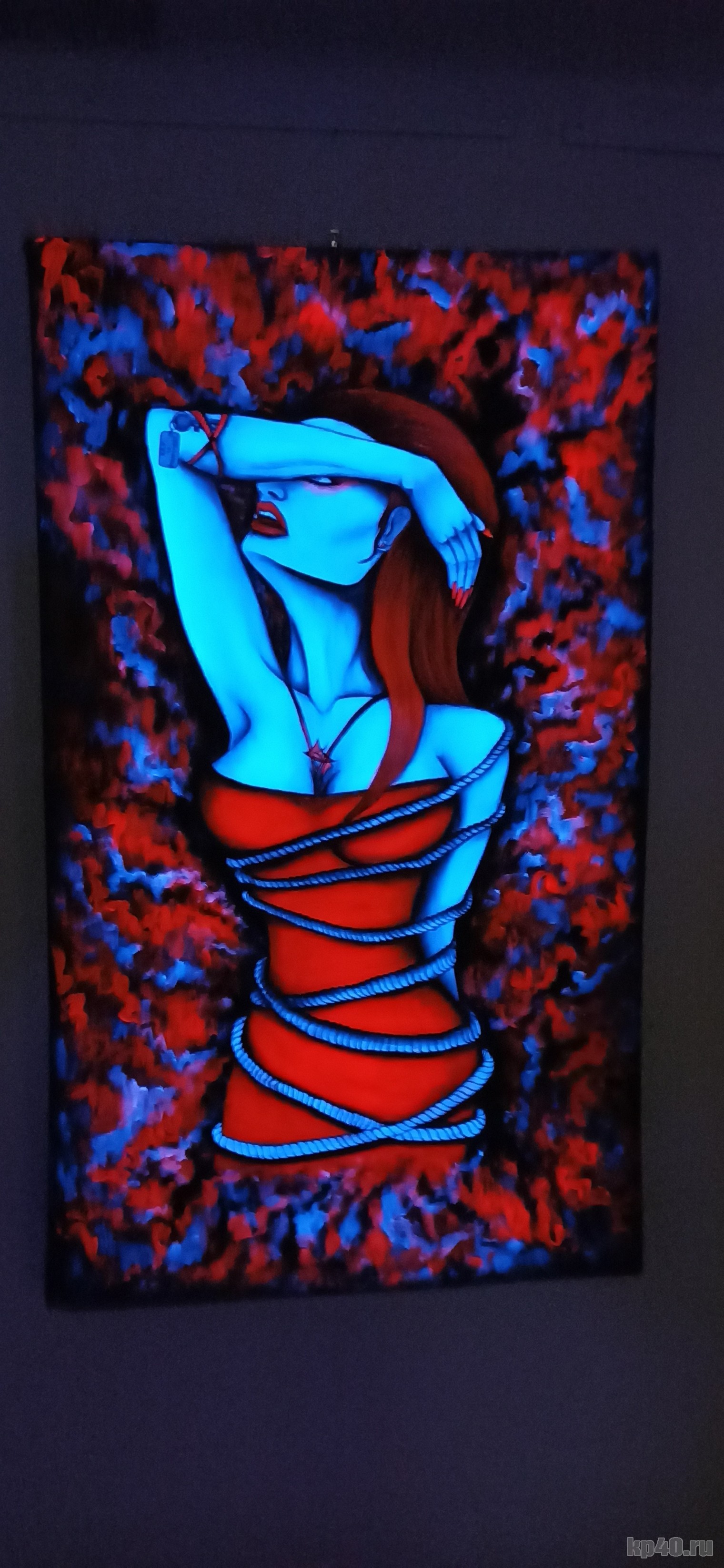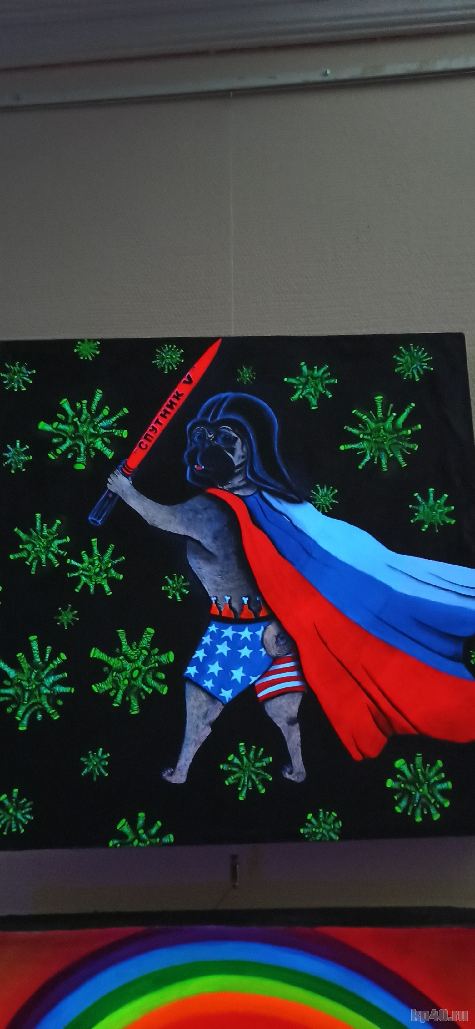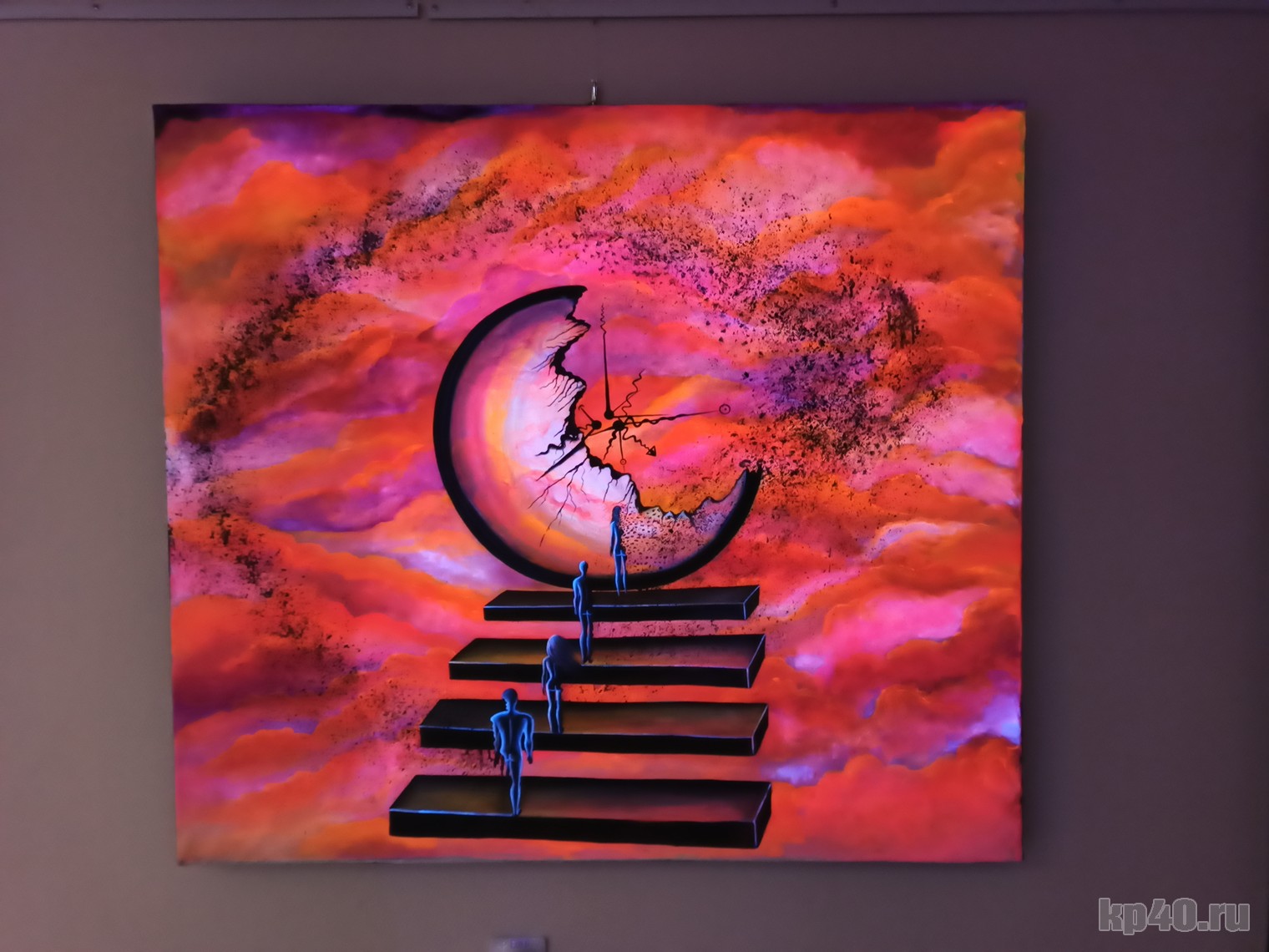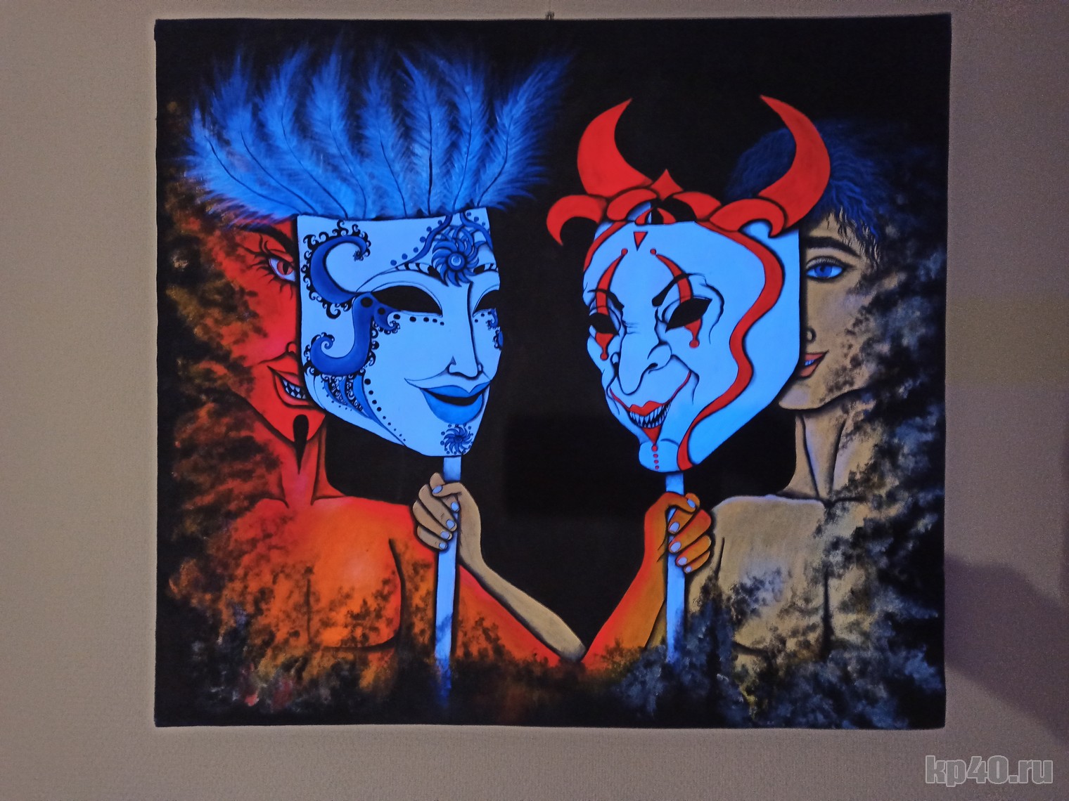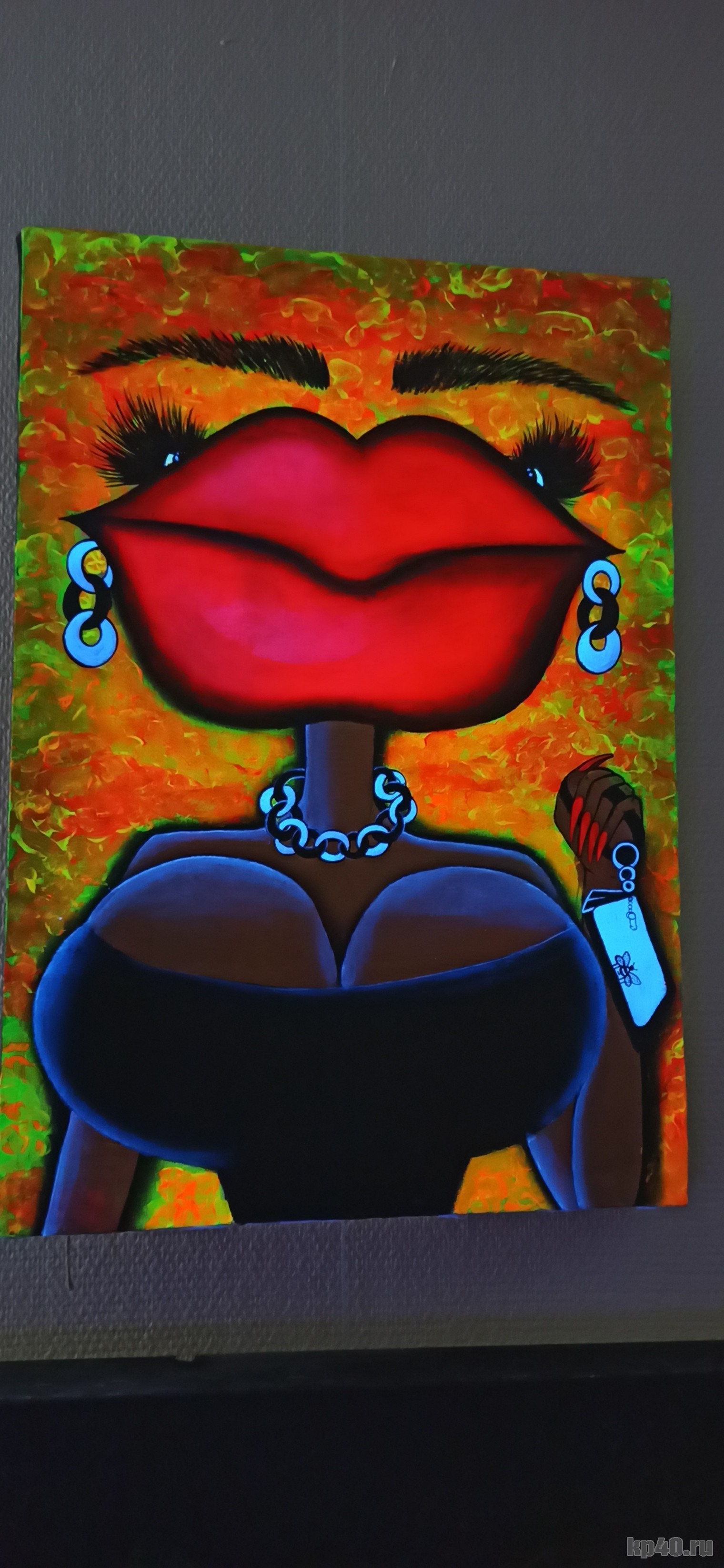 — Она единственная на этой выставке, выполненная флуоресцентными красками, но, к сожалению, без подсветки. Для нее одной не стали делать специальный свет. Я была в Москве на открытии. Народу пришло огромное количество. Художники не все попали внутрь, не смогли подойти к своим работам, просто на улице стояли. На выставке 370 работ, не только картины, но и инсталляции. Очень интересно!