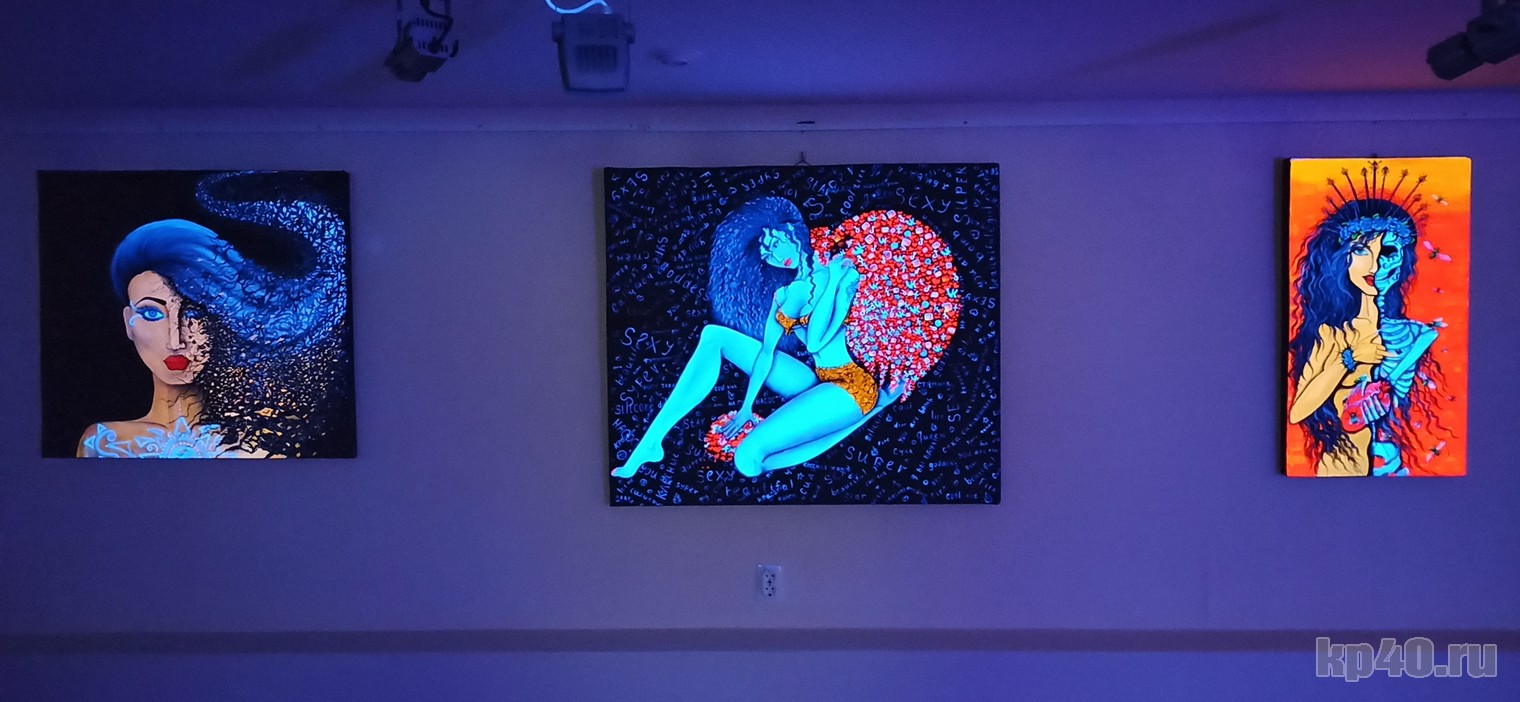— Меня больше тянет сюрреализм. Обожаю Сальвадора Дали. Но мой стиль другой, я смешала разные направления. Обычно на выставках работы флуоресцентными красками более абстрактные, в них нет сюжета. А я решила сделать сюжет, получилось интересно.