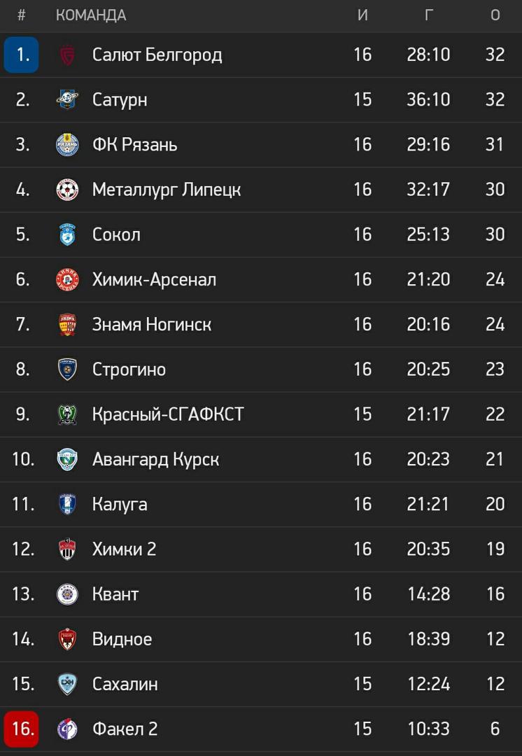После 16-го тура положение команд из Калужской области в турнирной таблице ухудшилось. «Калуга» опустилась на 11-ое место, «Квант» идет на 13-ой строчке.