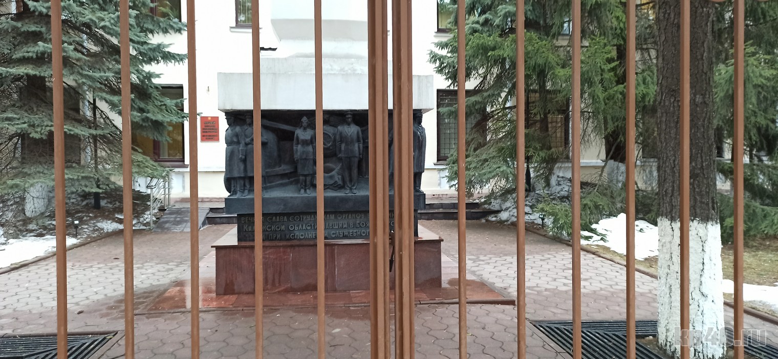 Во дворе под тенью хвойных деревьев виднеется памятник погибшим сотрудникам органов внутренних дел Калужской области. Его установили в 1988 году.