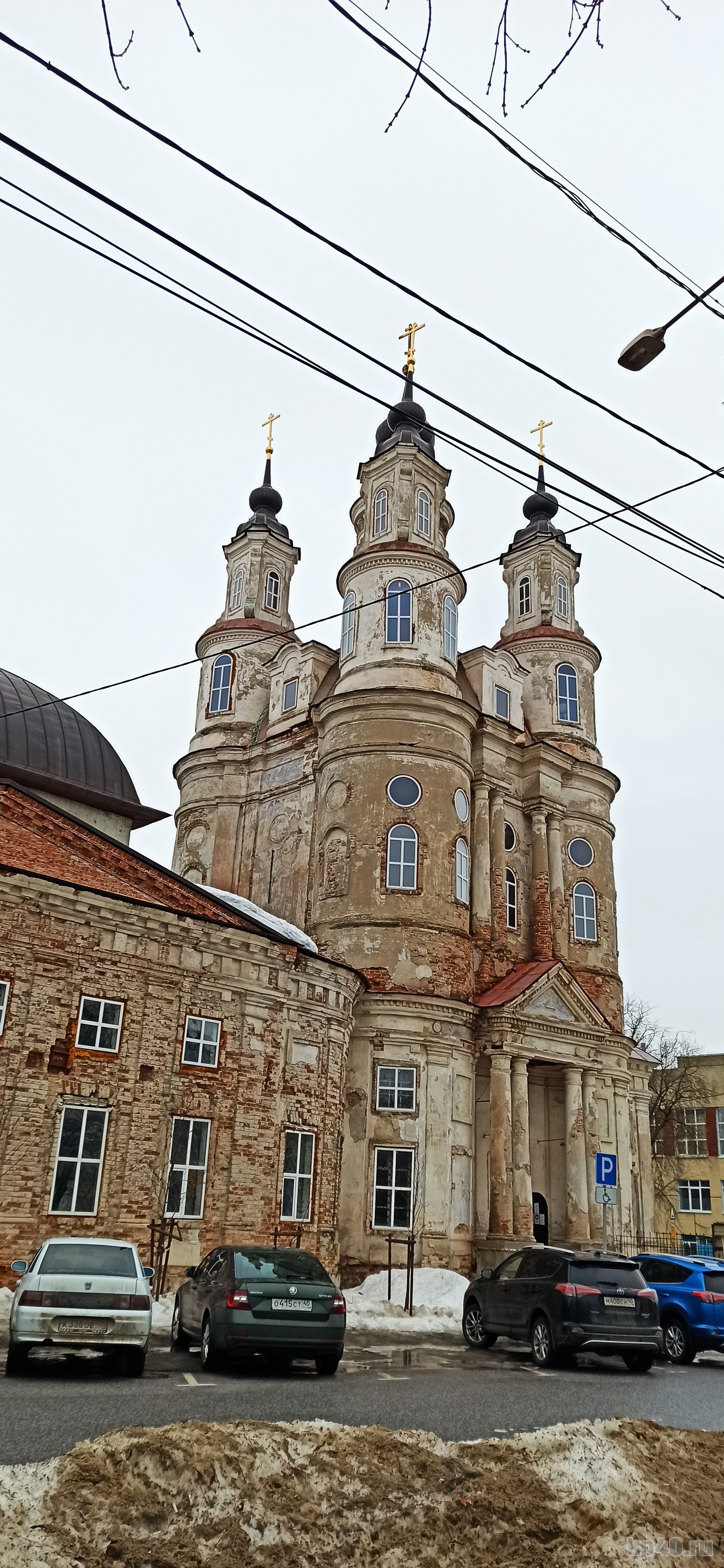 - Церковь возведена в духе петербургского зодчества эпохи Растрелли, - сказано на сайте церкви. - По «сходству почерка» предполагается, что и строил её один из учеников Растрелли. Почему церковь решили возвести в совершенно нехарактерном для Калуги стиле – неизвестно. Это не просто пятикупольный, а пятибашенный храм. Пять фигурных подкупольных «свеч» как бы с «восковыми натёками» так же купно устремлены ввысь, как у Смольного собора в Петербурге. Церковь похожа именно на собор и даже удивительно, что стоит она на такой небольшой, тихой улочке – и что район этот в XVIII веке был дальней городской окраиной.