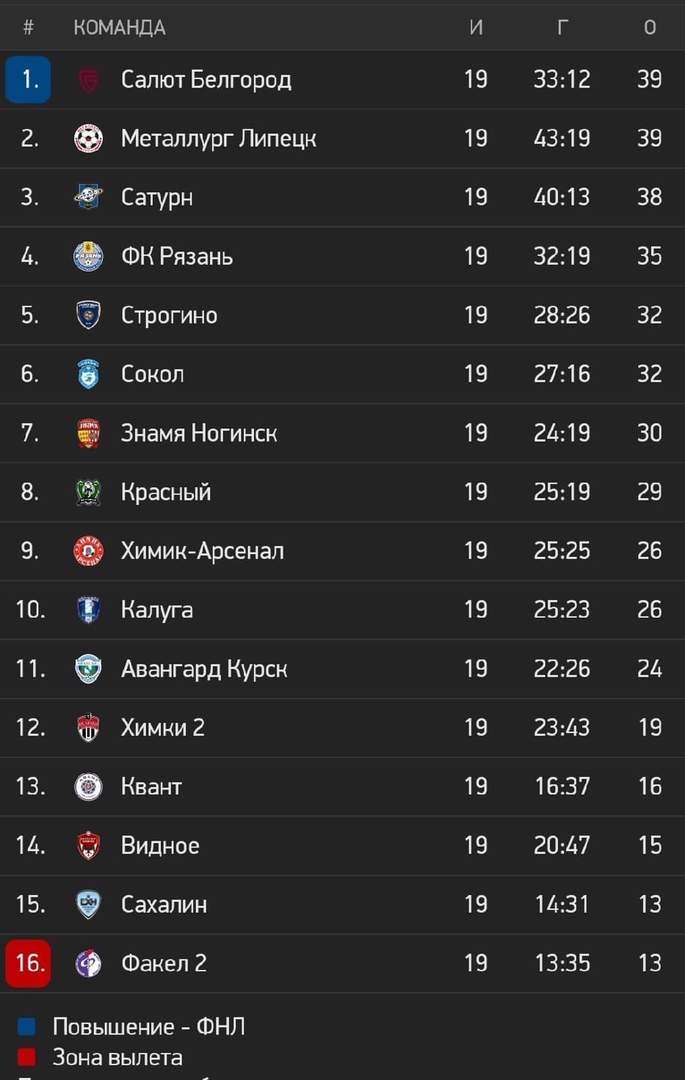 После 19-ти туров футбольный клуб «Калуга» располагается на 10-ом месте. «Квант» идет на 13-ой позиции.