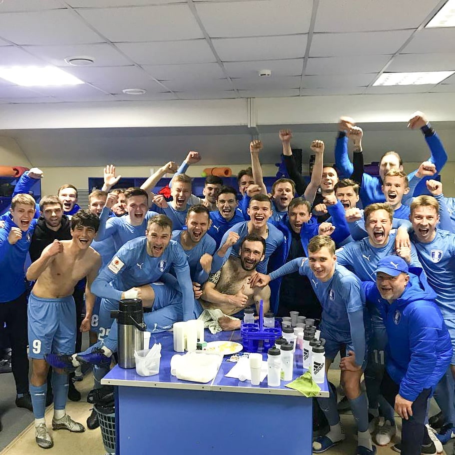 Традиционное праздничное фото в раздевалке ФК "Калуга"
