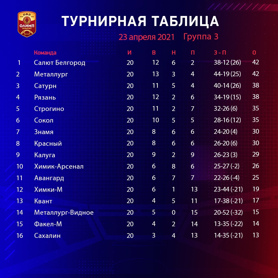 Турнирная таблица третьей группы первенства России среди команд Профессиональной футбольной лиги