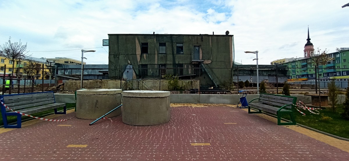 Увы, но, как оказалось, этим словам вняли не все. Рабочих мы заметили только на территории купола, который сейчас готовится к сносу. Скверопарк же совершенно свободен от пролетариата, а праздношатающиеся калужане прогуливаются, по сути, по помойке.
