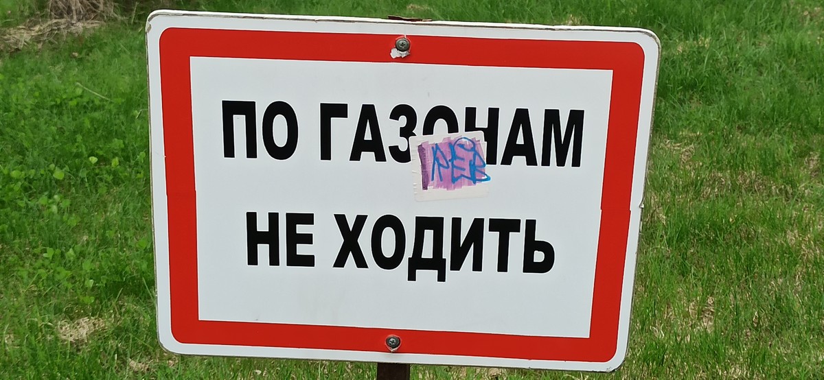 На месте баннера, вещающего о том, что в скверопарке комфортная городская среда, теперь висит более актуальный. Точнее, даже вечно актуальный. Может, так и оставить?