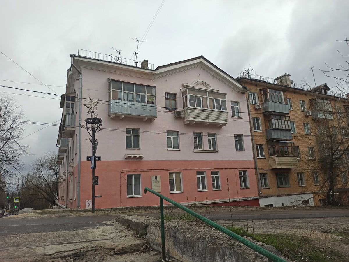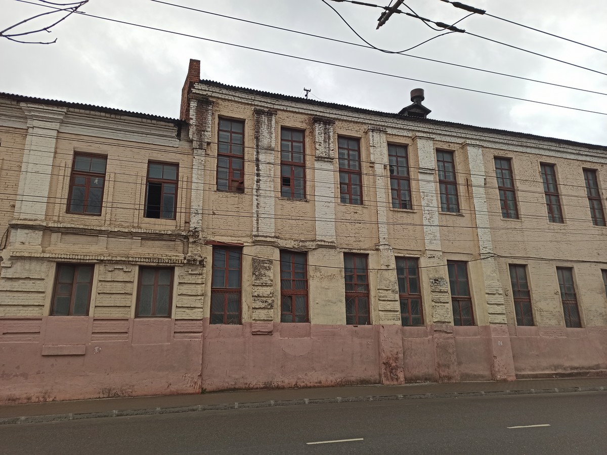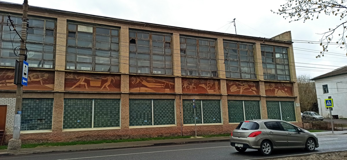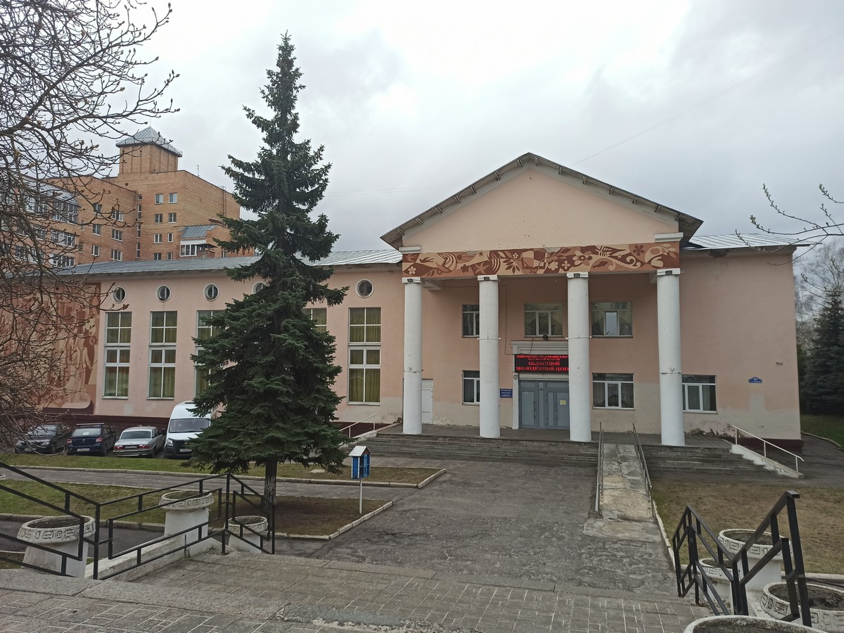 Ниже притаилось советское здание, в котором расположился областной молодежный центр. Ранее это был дом культуры завода КЭМЗ.