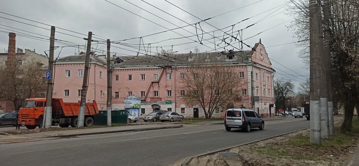 Но стоит выйти из дворов, и вновь в глаза бросается ажурное розовенькое здание, как с открытки. Конечно же, если в фотошопе убрать провода, мусорку и бак с водой.