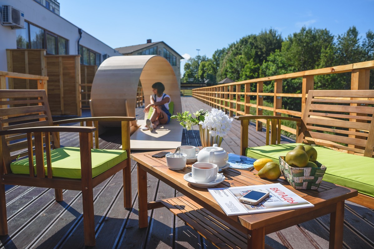 ХИТ! Бунгало – это уютные номера с отдельным входом и собственной террасой, с которой открывается потрясающий панорамный вид на изгиб русла реки Оки и городские пейзажи.