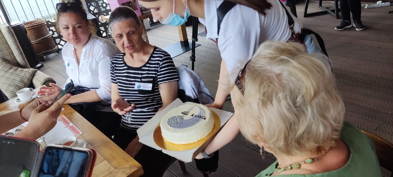 Заглянуть в листочек с результатами голосования нам не удалось, точных цифр мы не знаем. Но выиграл победитель с громадным отрывом. От того и встречали создательницу фирменного городского торта громогласными аплодисментами.
