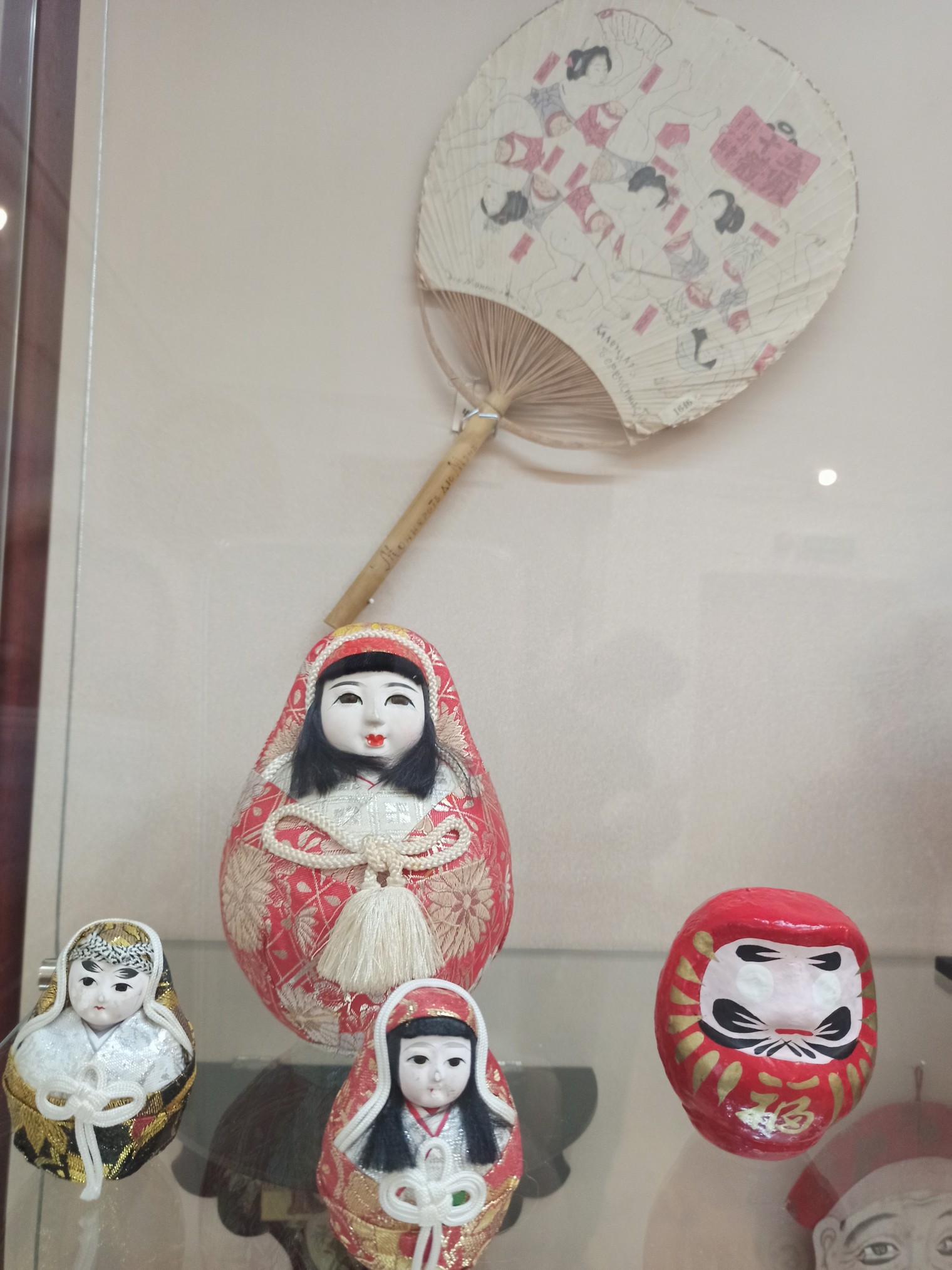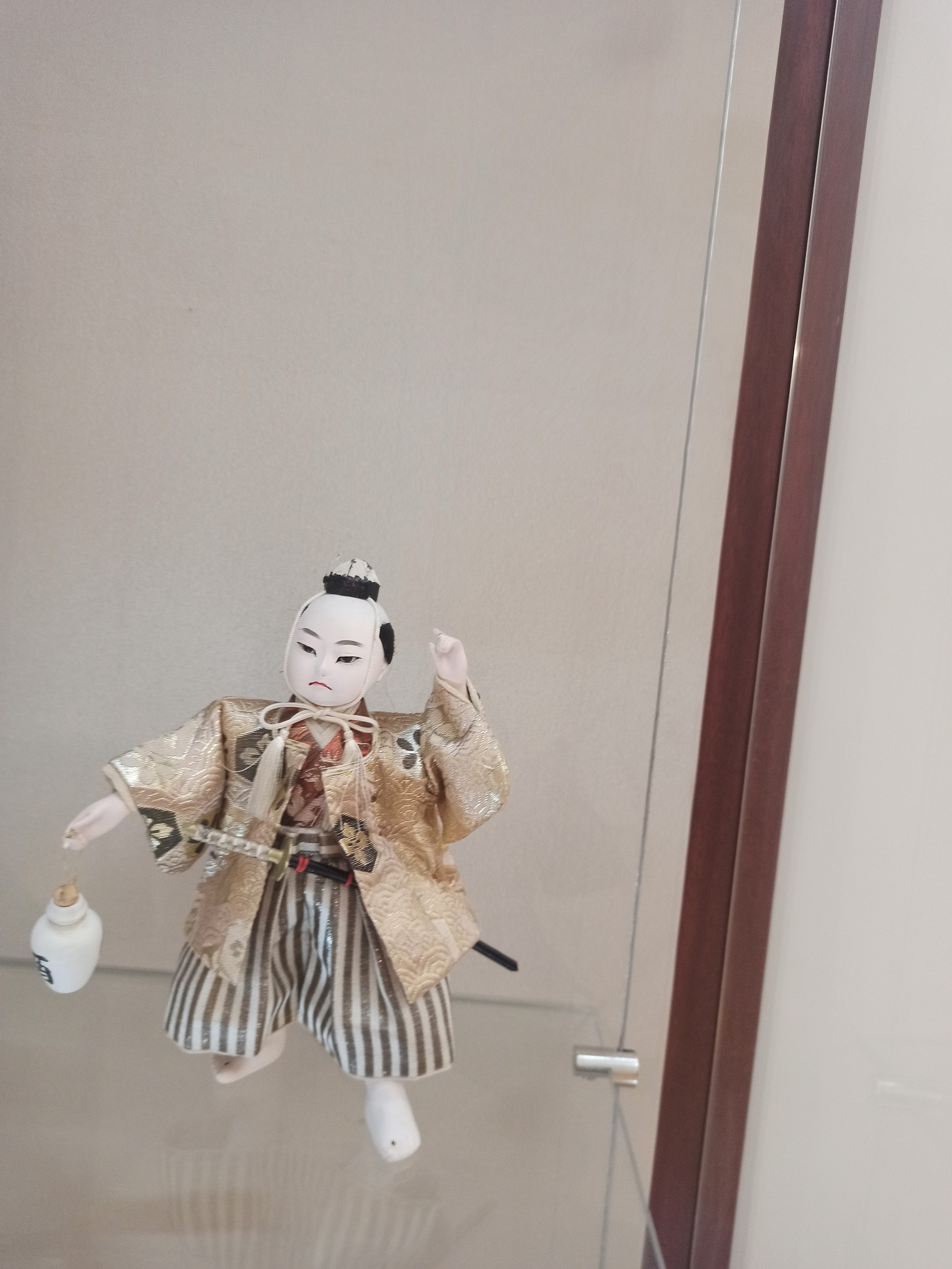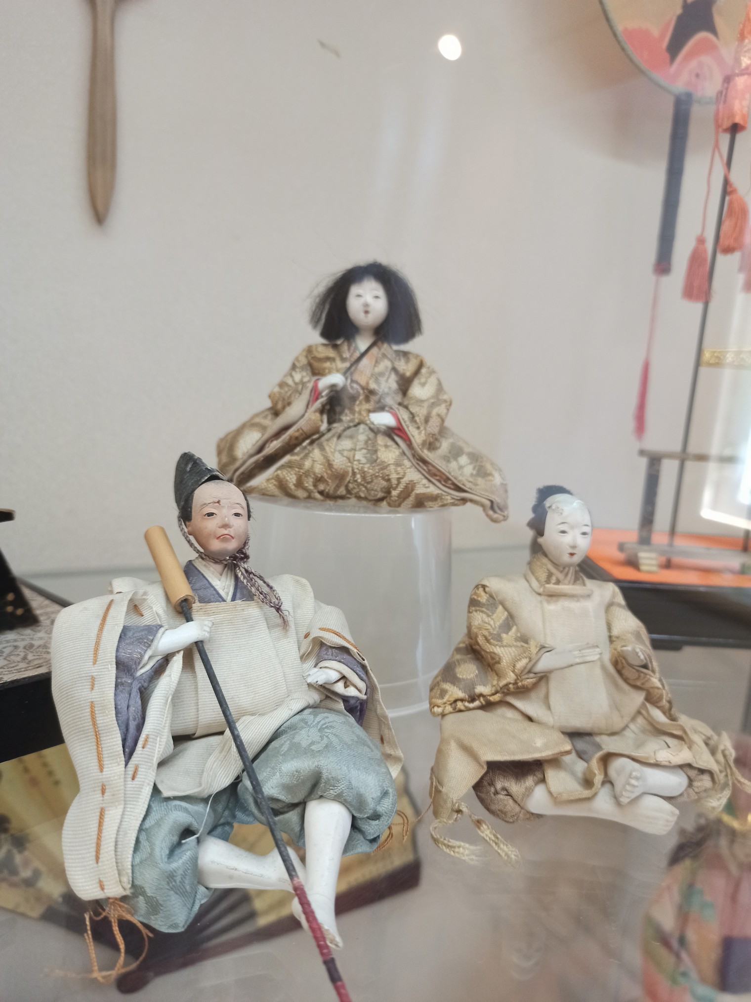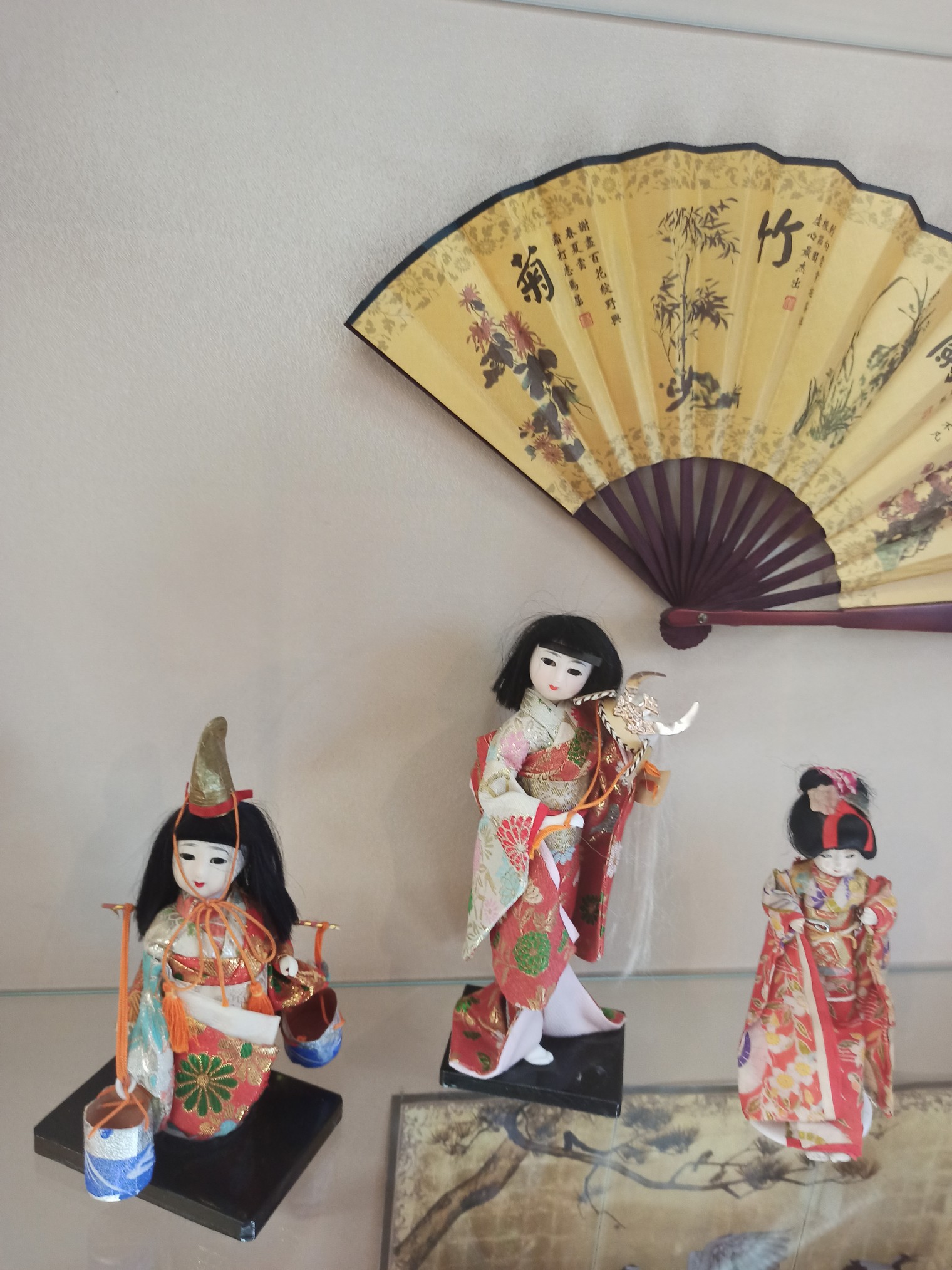 Выставка «Мир цветущей сакуры» будет работать до конца мая. Здесь можно увидеть не только кукол, но и предметы: японскую посуду, мужское кимоно, деревянную обувь, веера и уникальную фарфоровую нецкэ — механическую обезьянку.