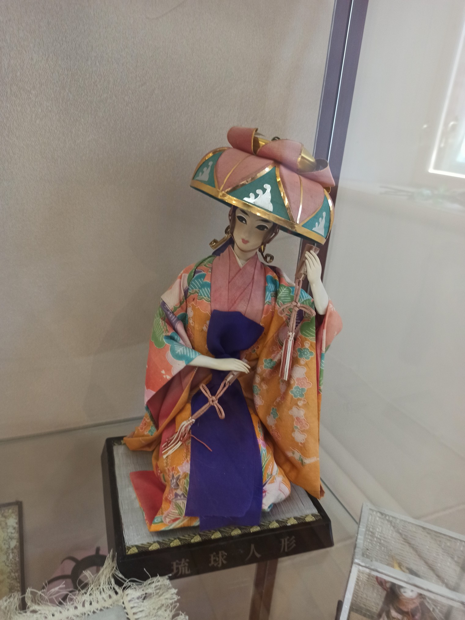 Винтажная кукла Рюкю. Острова Рюкю в разное времена принадлежали Китаю и Японии. Позже они закрепились за Японией. На кукле своеобразный наряд – летнее кимоно с сложное, с подкладом. Оно больше похоже на китайское.