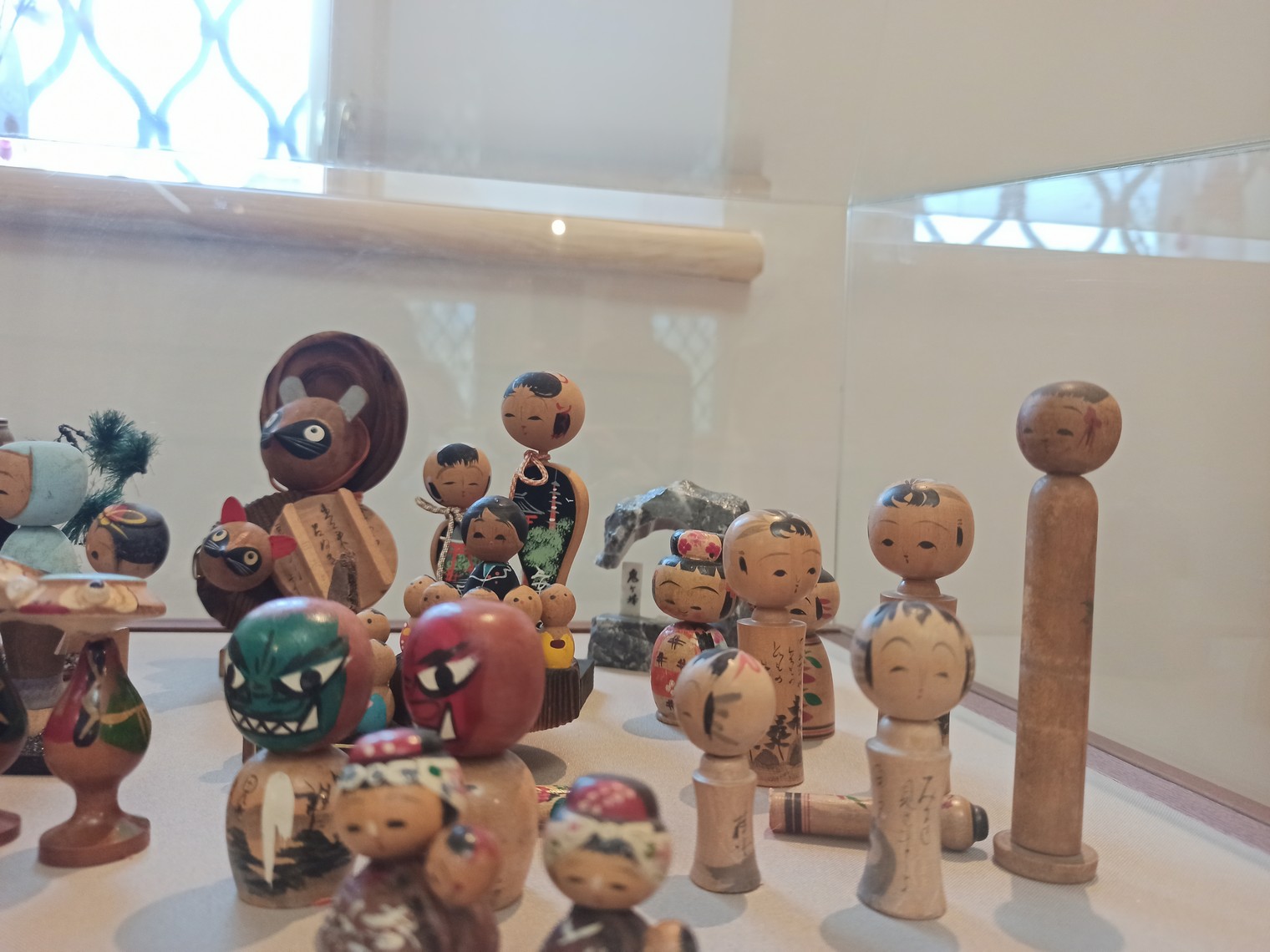 — Самый популярный японский сувенир — куклы Кокеши, — показывает маленьких деревянных кукол Татьяна Александровна. — Раньше они изображали только девочек. С их происхождением связано три версии. Согласно первой, жена одного сёгана не могла родить, она поехала в место, где были целебные источники, искупалась и родила дочь. В честь этого сделали куклу. По второй версии бедные люди в Японии не могли прокормить много детей и от нежеланных девочек избавлялись. А в память о ребёнке ставили кукол до метра высотой. А по третьей версии эти куклы — просто сувениры, которые стали делать на горячих источниках для отдыхающих. Традиционно их вытачивали из дерева. Эти куклы были похожи на столбики, без рук и ног. Но сейчас стали более интересными, делают целые композиции. Добавляют разные материалы: пластик, бумагу, обработанную специальным образом.