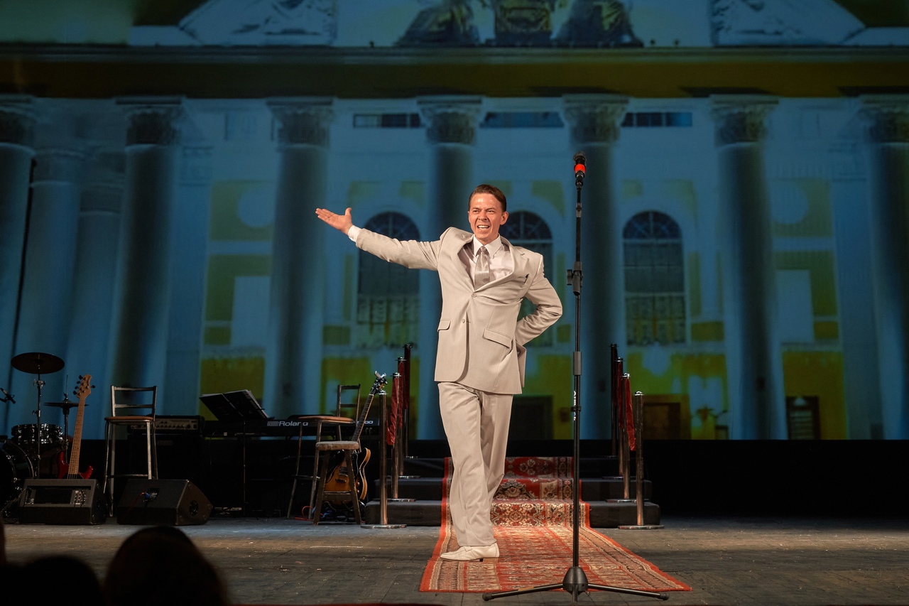 Вечером пятницы, 28 мая, в Калужском драмтеатре состоялось закрытие 244-го театрального сезона. Однако темой вечера организаторы выбрали не события самого сезона, а двадцатилетие первого выпуска калужских актеров курса РАТИ-ГИТИС. Режиссером ретроспективного капустника стал Захар Машненков.