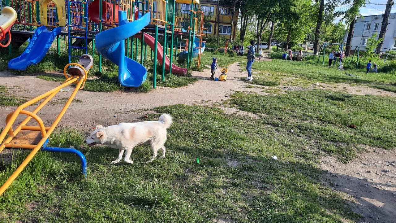 Это Снежок из Шопино, у него есть хозяин, но тот за своим питомцем не следит. Если поправки в административный кодекс примут, владелец Снежка будет за это оштрафован.