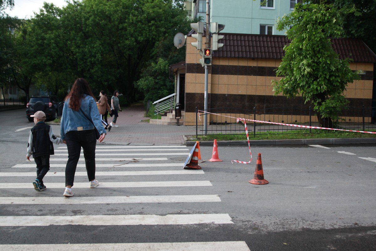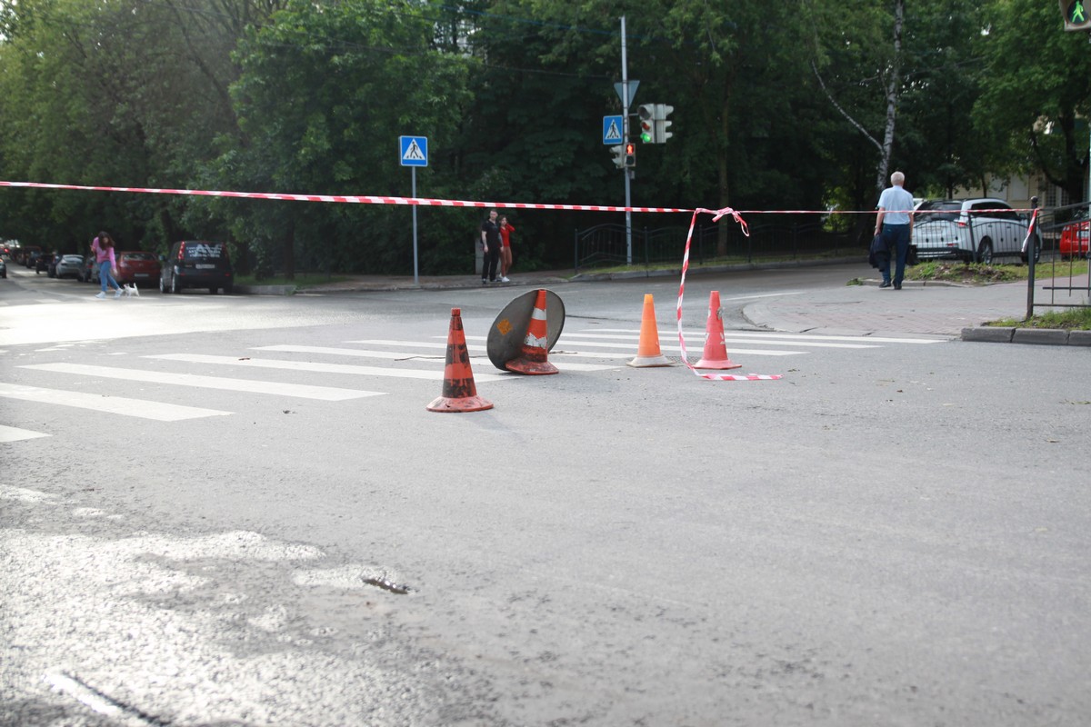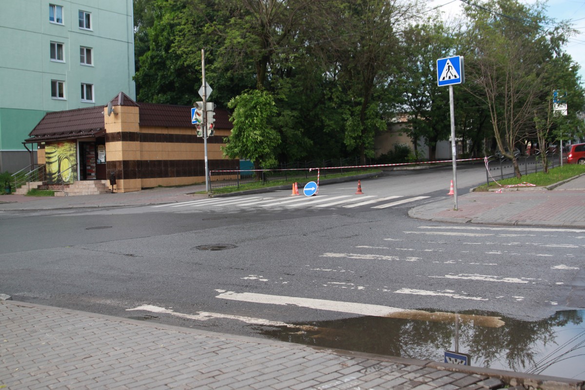 А вот участок улицы Тульской от Николо-Козинской до Степана Разина после грозы перекрыли.