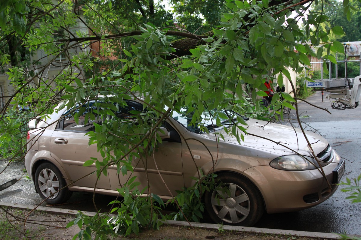 Она живет в общежитии при ВУЗе. Выйдя из здания, калужанка увидела на своем «Шевроле Лачетти» рухнувшее дерево.