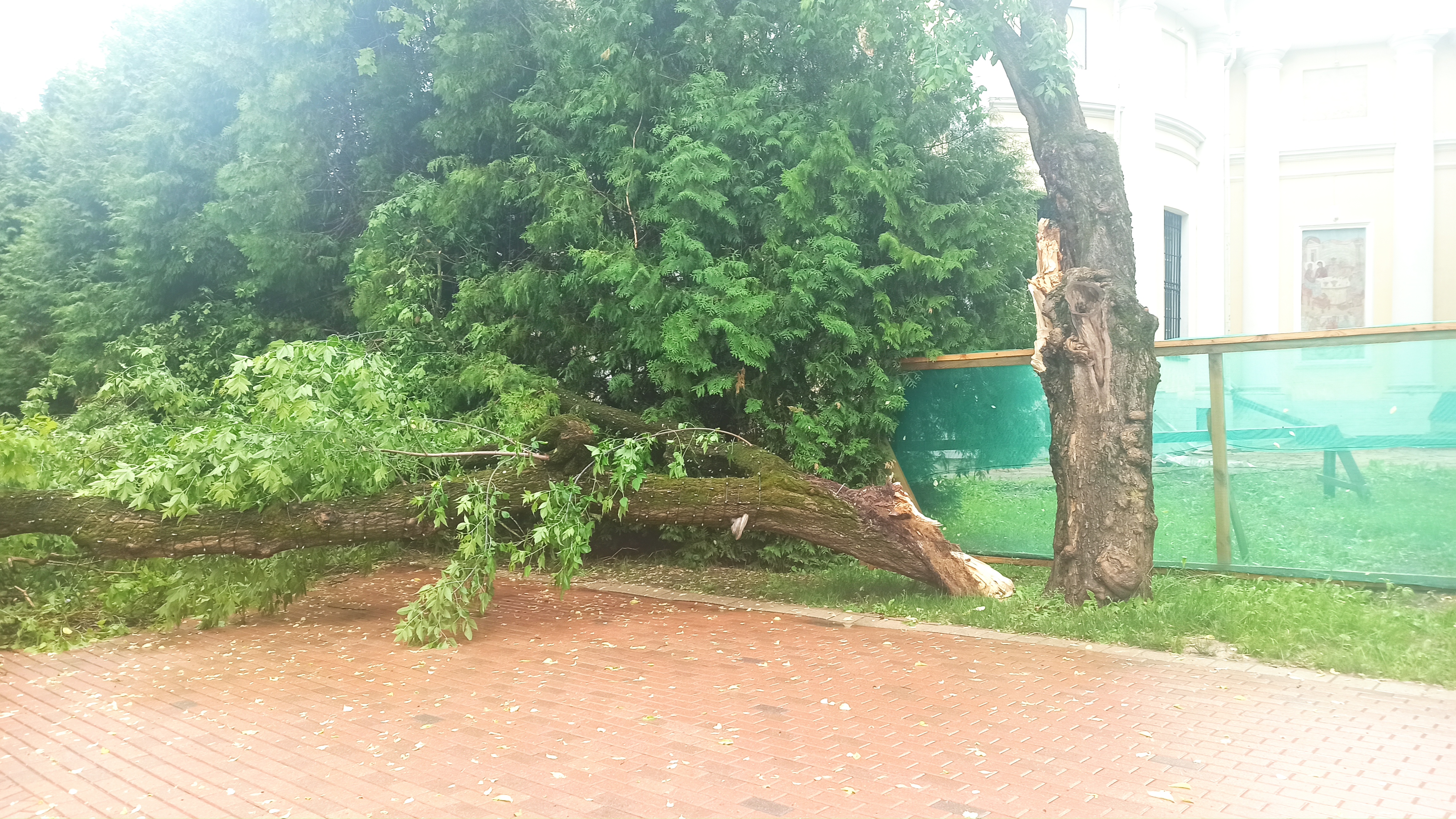 Также молния не пощадила дерево в Городском парке культуры и отдыха возле Калужского Свято-Троицкого кафедрального собора (фото: Ирина Моргунова).