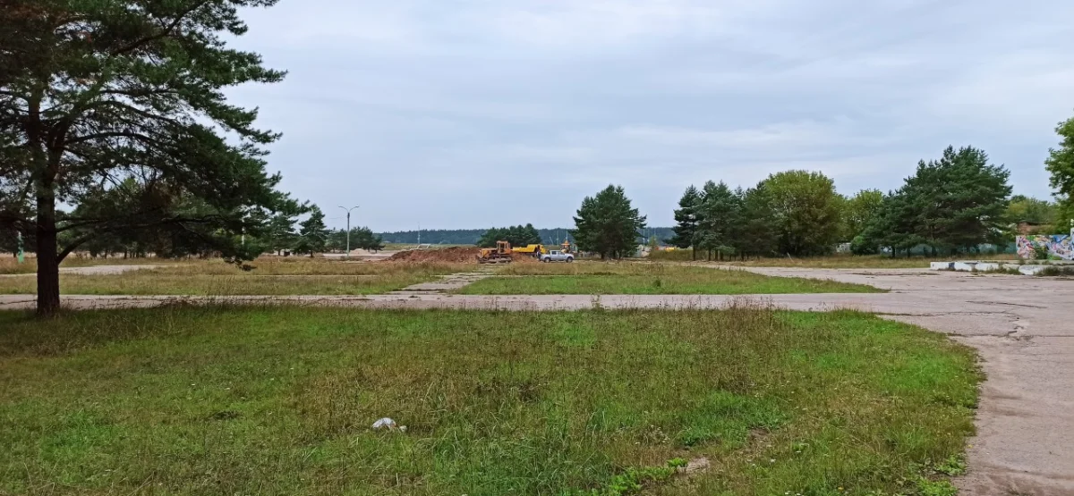 Прежде чем двигаться к отдалённым уголкам Калуги, мы решили посетить сквер Волкова. Он и стал нашей отправной точкой. Тут уже вовсю ведутся работы над обещанным футбольным полем. Также в планах — установка душевых вместимостью 8 человек, три модульных туалета и памп-трек.