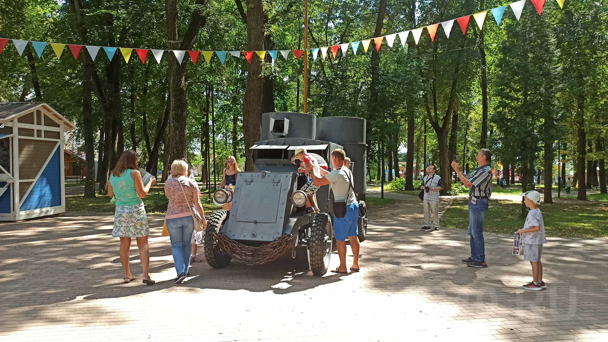 Для калужан и гостей города работают интерактивные площадки полевого штаба, пункта связи, госпиталя.