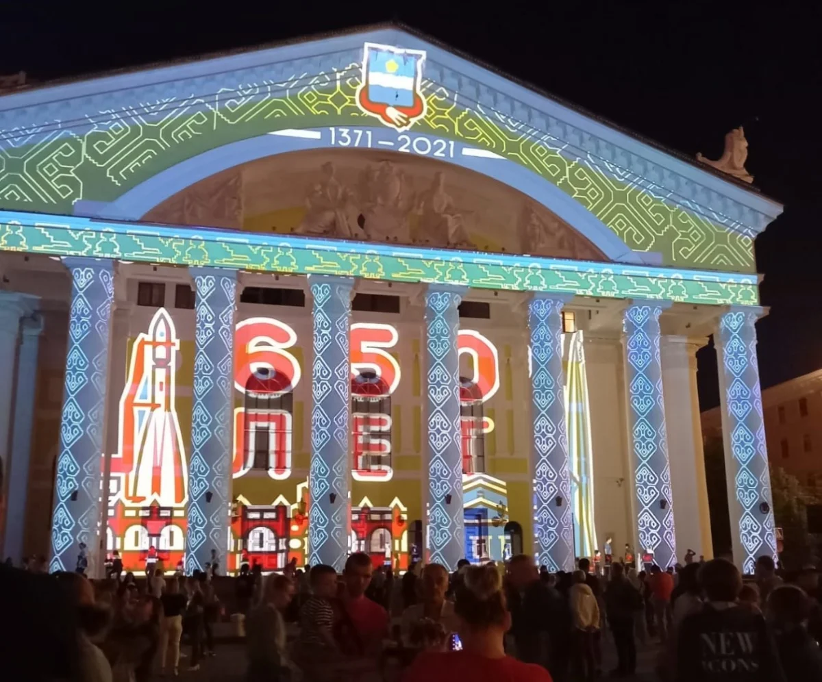 Для начала же вечера можно было еще посетить Театральную площадь, которую мы уже упоминали. Людей и здесь было очень много. Большинство из них пришли посмотреть на светомузыкальное представление «День города. Калуга 650». Драматический театр превратился в большой экран. На здании в течение трех часов каждые 20 минут транслировалось представление.