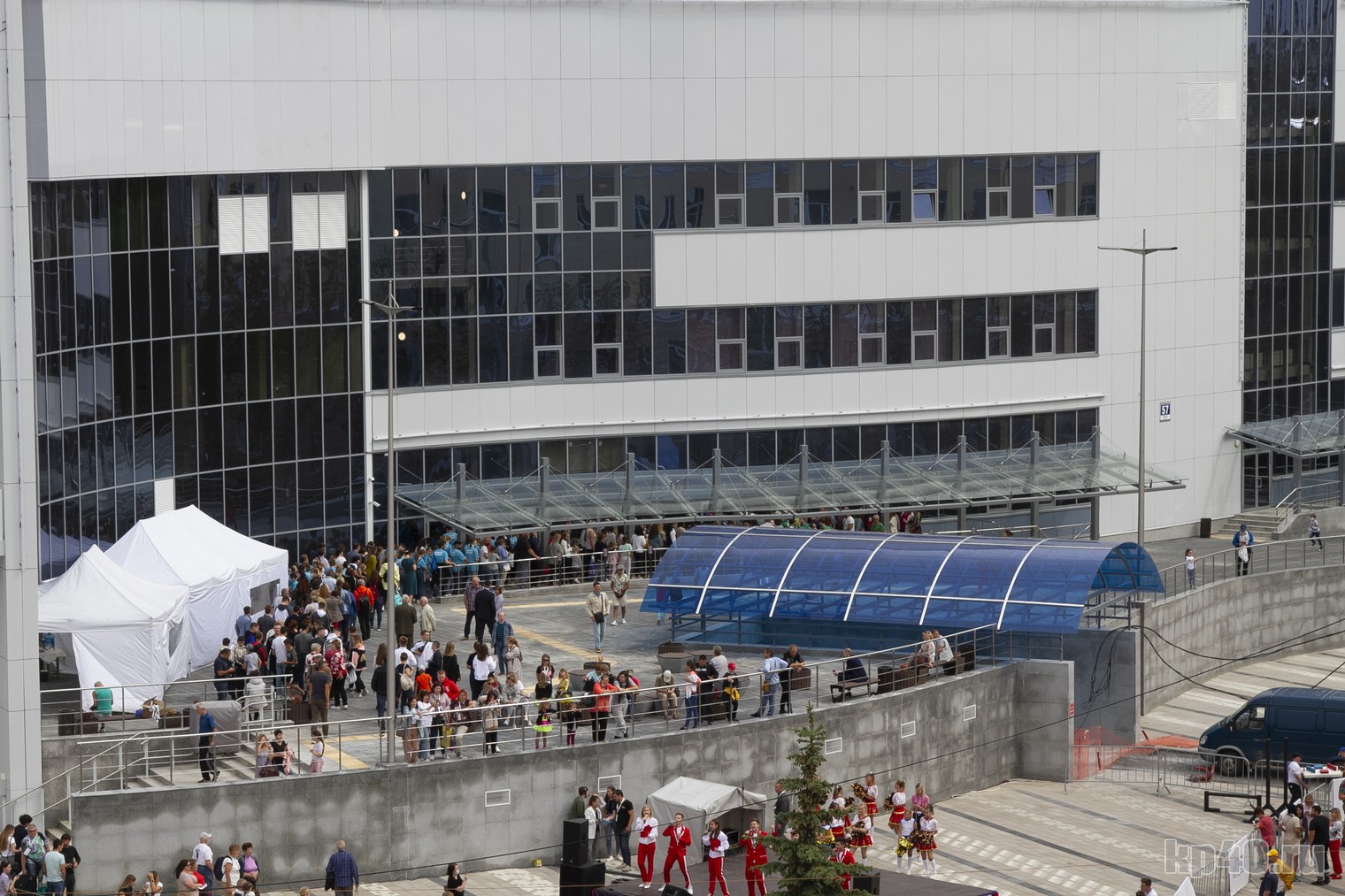 Праздник на площадке перед Дворцом начался еще утром. В нем могли участвовать все желающие. А в обед стартовала закрытая часть, на которую попадали лишь по приглашениям.