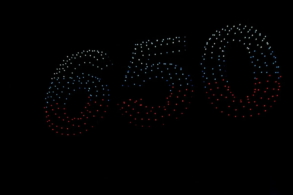 После концерта Полины Гагариной зрителям продемонстрировали светомузыкальное шоу перед и над главной сценой. А потом в воздух поднялась армия дронов.