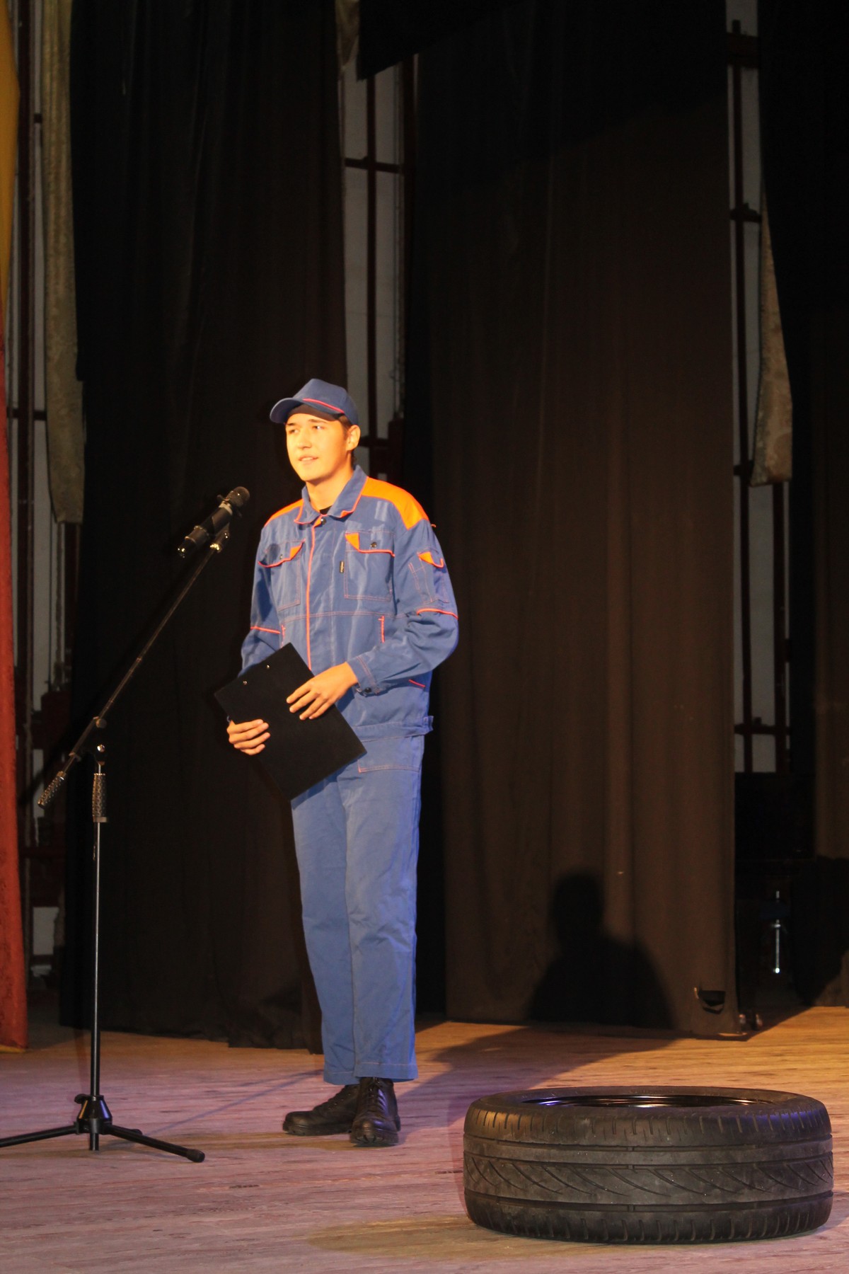 Студент Калужского кадетского техникума им. Карпова – будущий мастер по ремонту авто Дмитрий АНИКИН вышел на сцену с автомобильным колесом. Автомеханика он сравнил с ясновидящим и врачом. Жюри оценило креатив Дмитрия, отдав ему 1 место в номинации «Профессионал года».