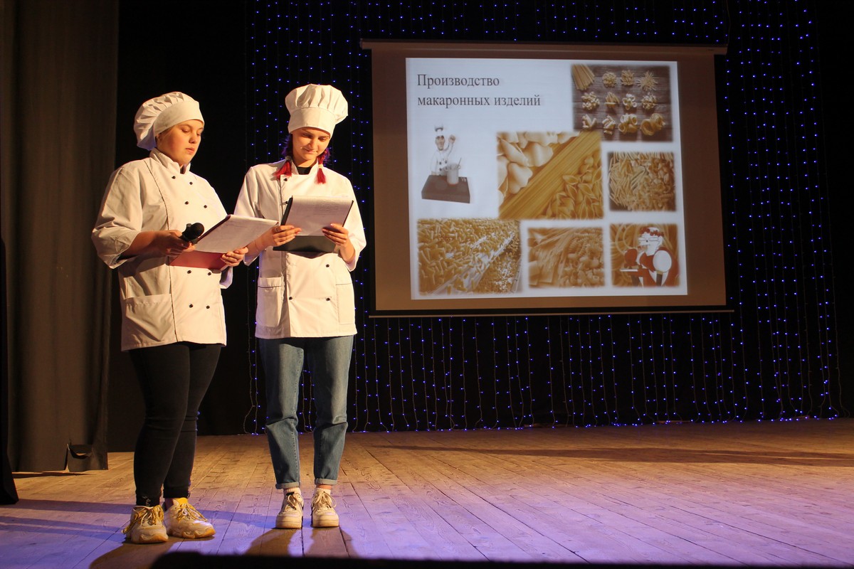 Студентка Калужского колледжа экономики и технологий Вера ГЕРАСИМОВА в стихах рассказала о хлебе, пирожных и макаронах и испекла пирог для жюри.