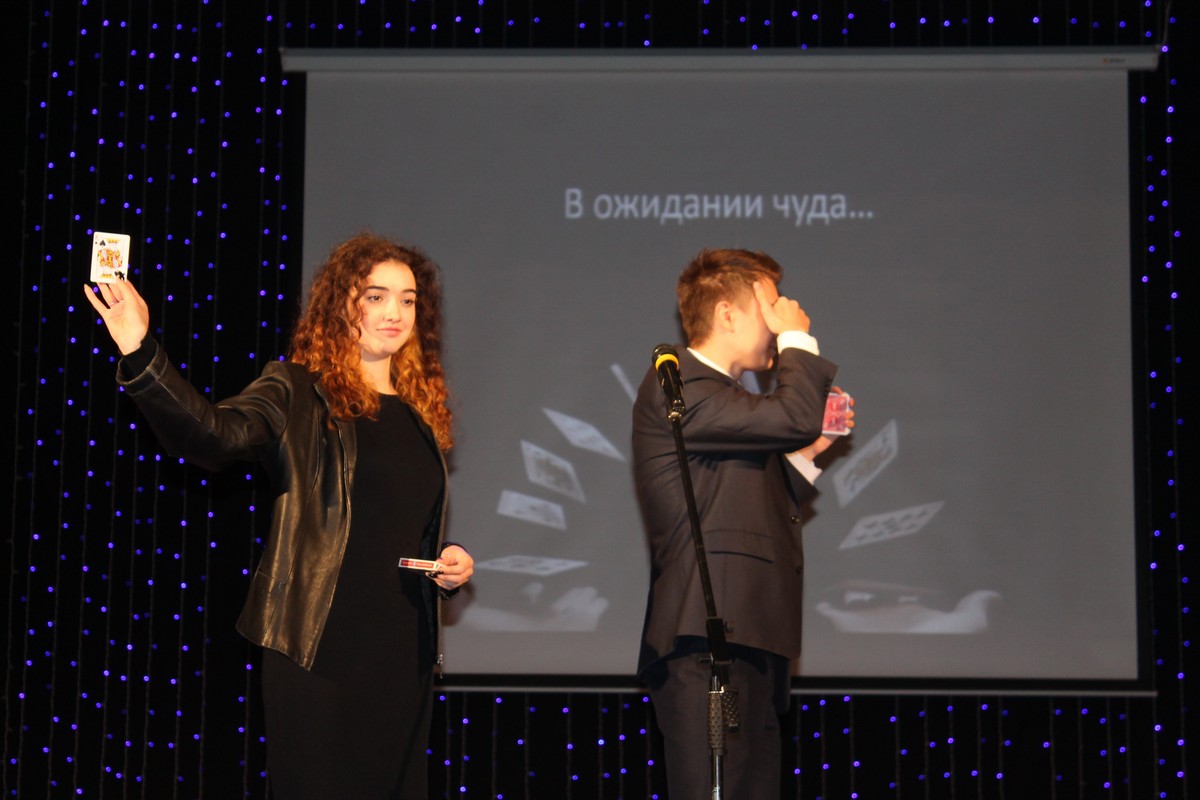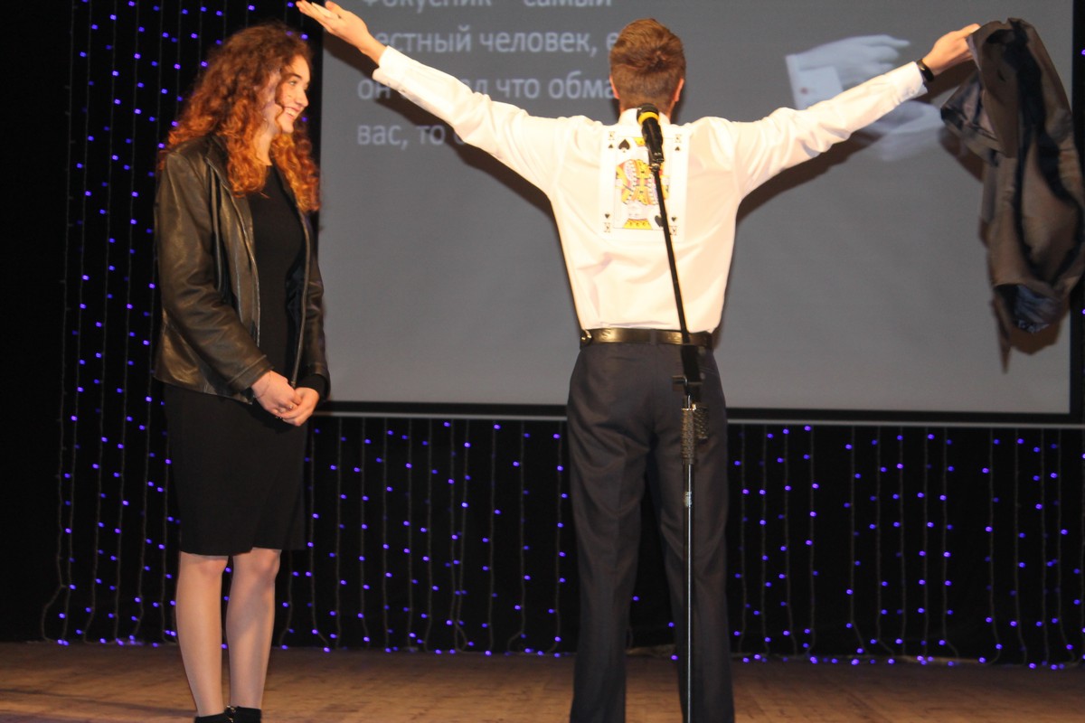 Александр объявив, что он честный фокусник, предложил зрителям помочь ему. Из первого ряда вышла студентка Евгения Сёмина. Честный фокусник обещал угадать карту, которую она вытащит из колоды и покажет зрителям. Евгения вытащила пикового короля.
