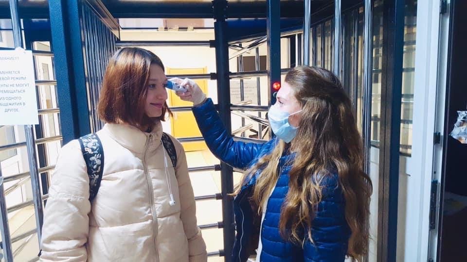 Измерение температуры тела при входе в общежитие.