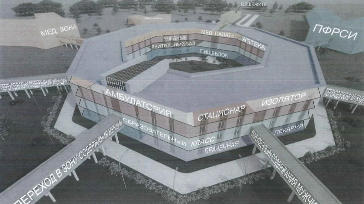Планируется, что она будет включать в себя множество зданий: единый центр обслуживания, административное здание, многофунцкиональный следственный корпус, дом женщины и ребенка, центр трудовой адаптации и другие.