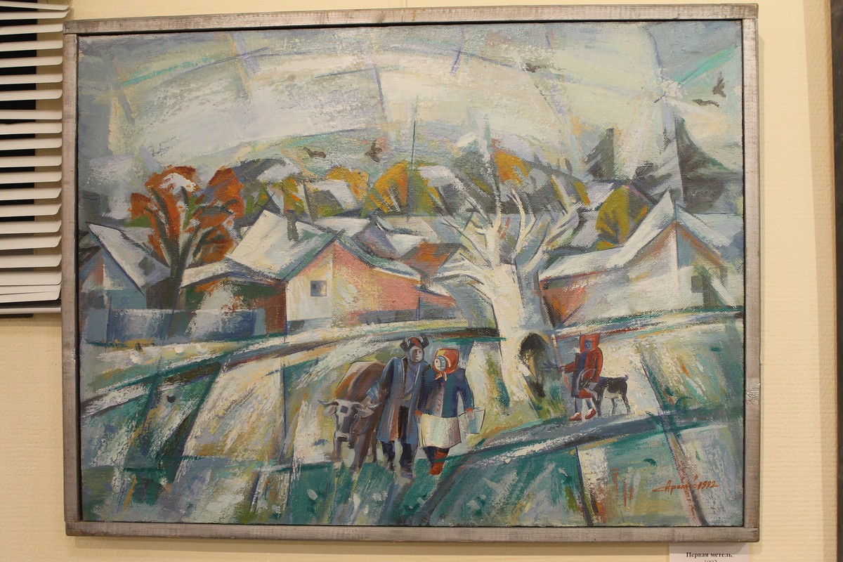 На Алтае написал маленькие этюды. Там у меня брат живет, я там был. Многие с натуры писал. А есть работы, связанные с личными ощущениями. Вот - в Алтайской серии женщины овечек перевозят на другой берег. Это связано с моими детскими воспоминаниями.
