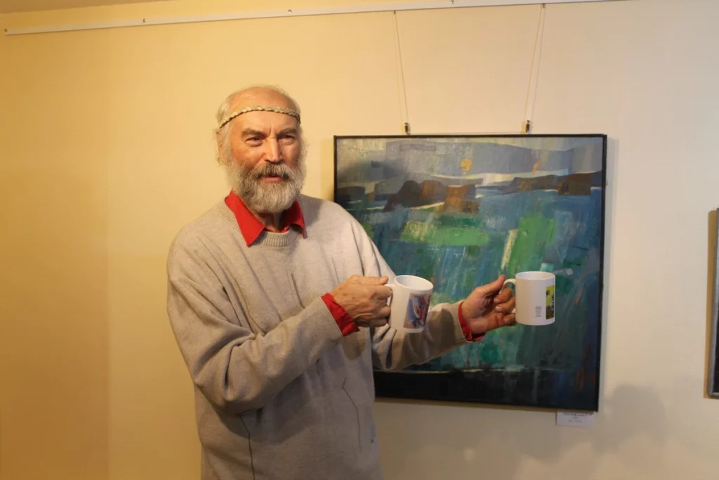 Вернисаж получился очень позитивным. Состоялся он накануне введения ограничений, но виновника торжества – художника Владимира АРЕПЬЕВА - это не расстроило. Он даже придумал для зрителей антиковидный аукцион, на котором разыграли эксклюзивные кружки с картинами мастера.