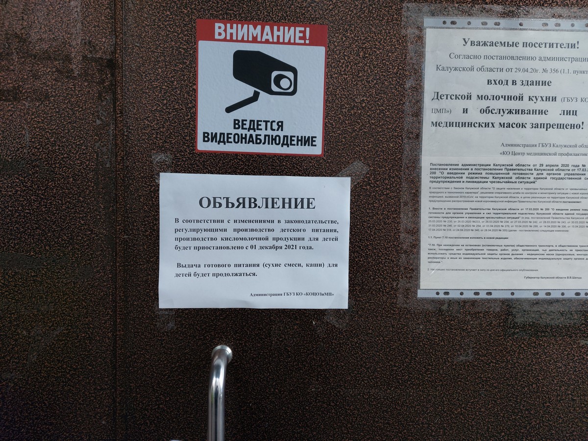В Калуге с 1 декабря молочная кухня, расположенная на улице Билибина, прекращает производство кисломолочной продукции для детей. Теперь там будут выдавать только готовое питание – сухие смеси и каши.