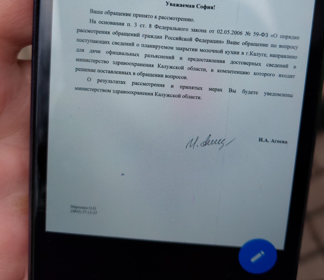 - Я уже обо всем написала Ирине Агеевой, омбудсмену Калуги, и Илье Совакову (замминистра здравоохранения, - прим. ред.), жду ответов, - говорит Софья Барабанова. - Я как узнала – сразу обратилась. Как я и сказала в своем письме, если проблема в финансировании и не хватает средств на оборудование по QR-кодированию – можно открыть благотворительный фонд. Я лично готова внести деньги.