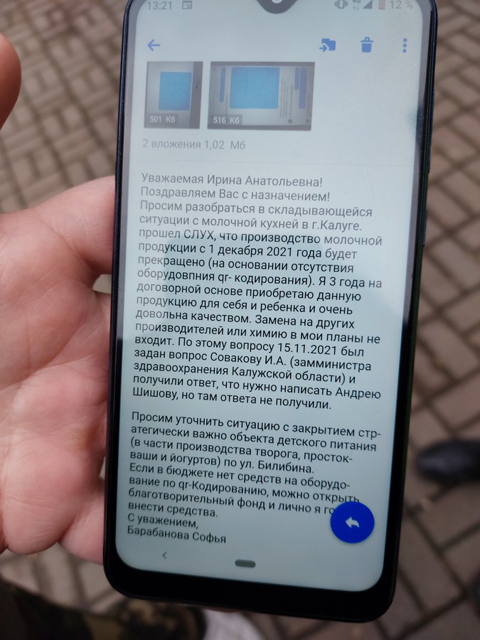 Я слышала, что с 1 декабря вся молочная продукция должна продаваться с QR-кодом, поэтому всем производителям нужно приобрести станок для этих кодов. А у молочной кухни его нет, он очень дорогой. Предприятие-то маленькое.