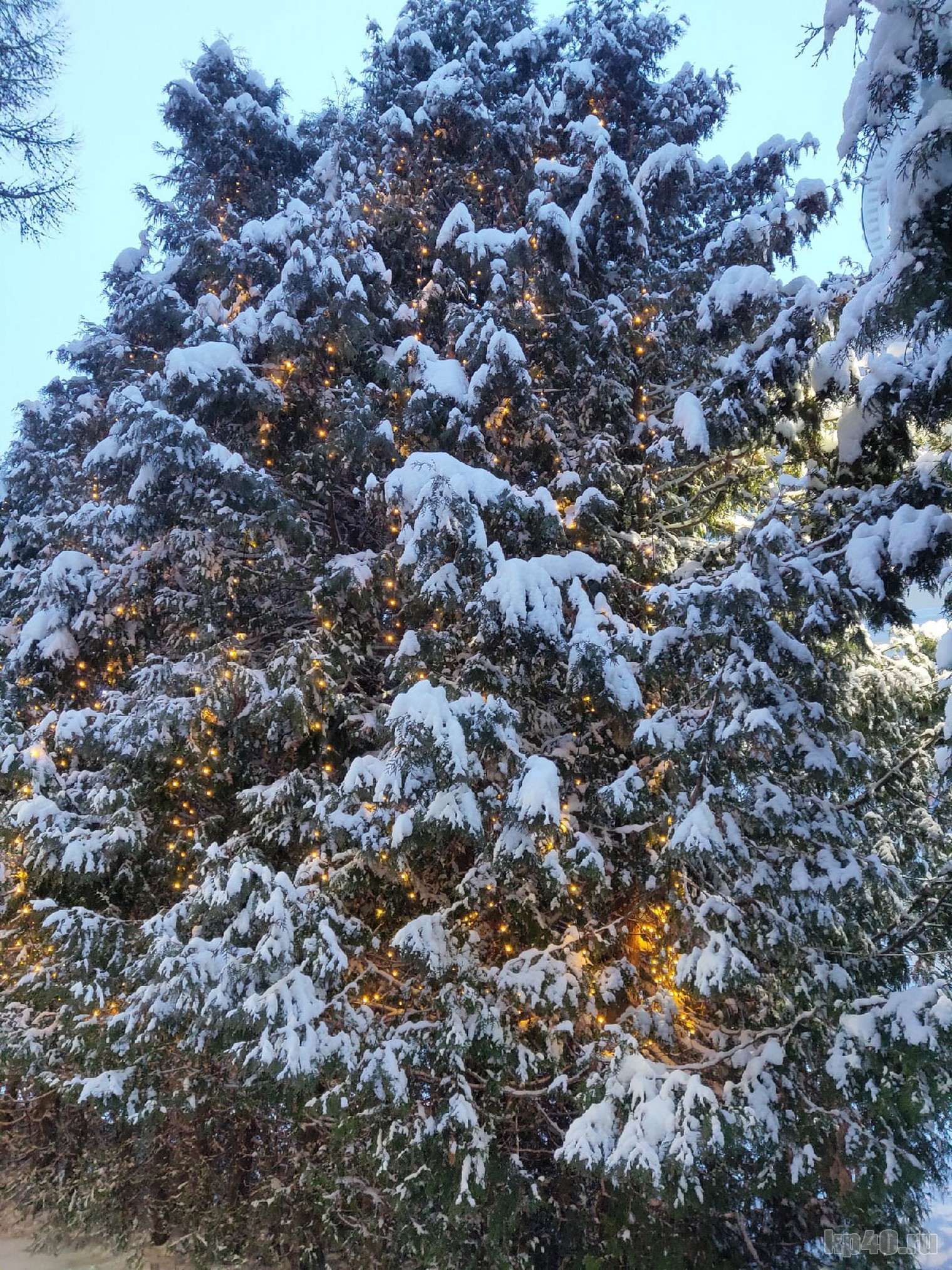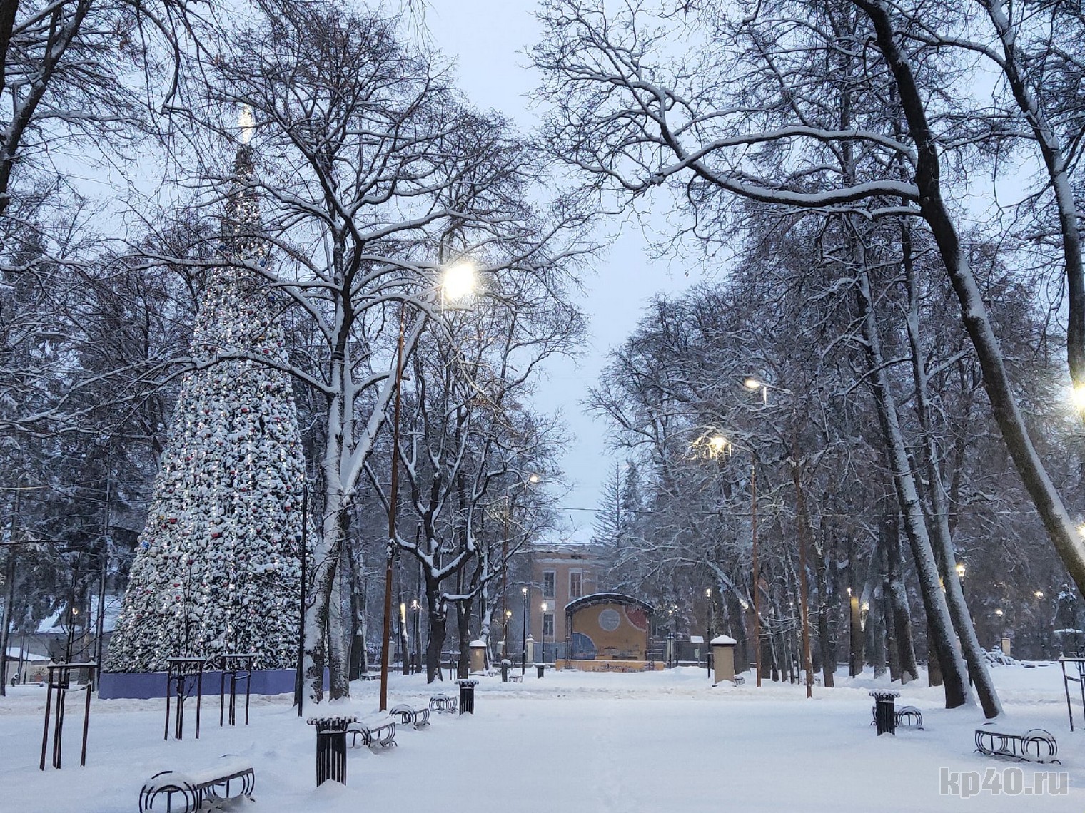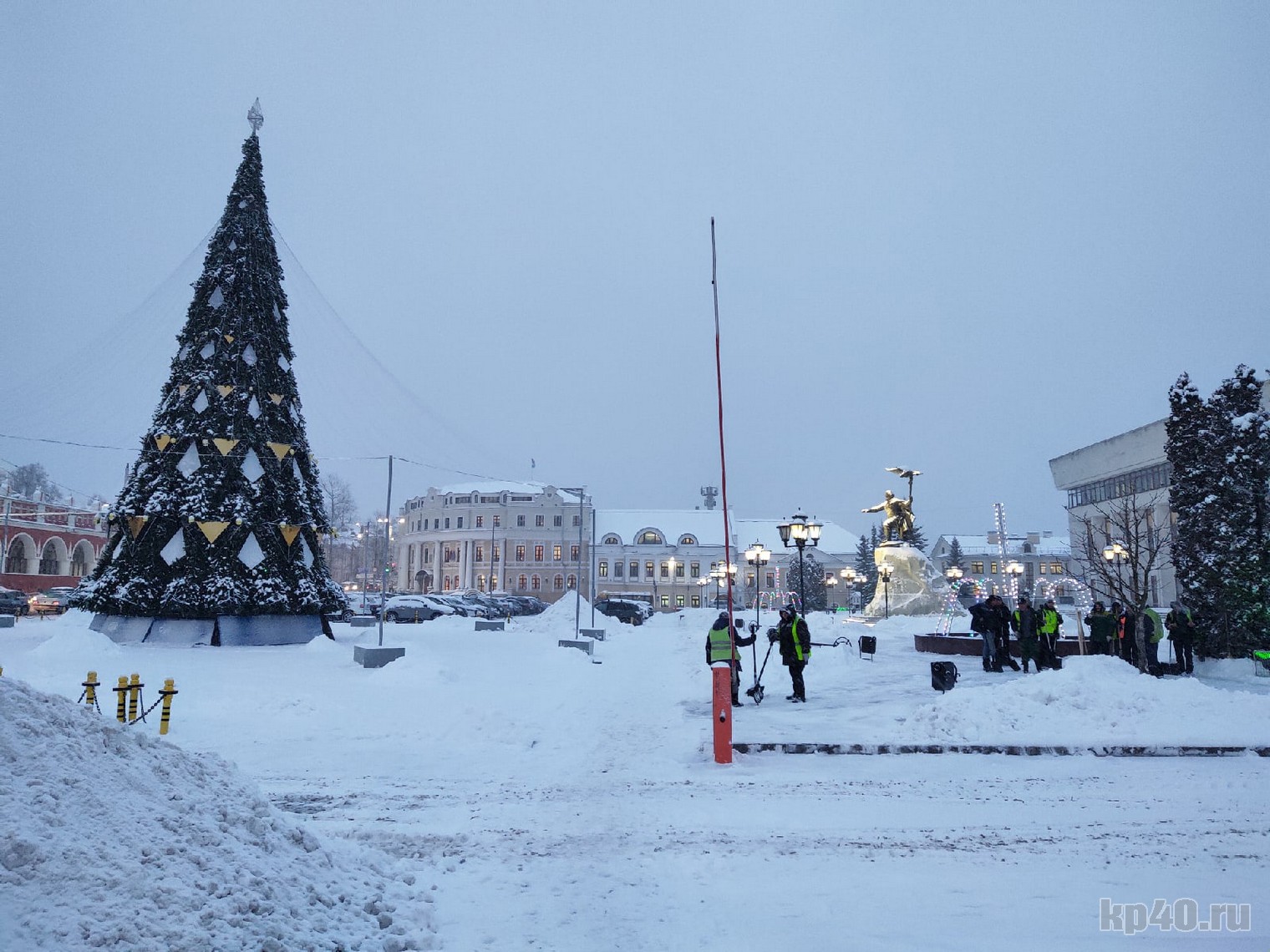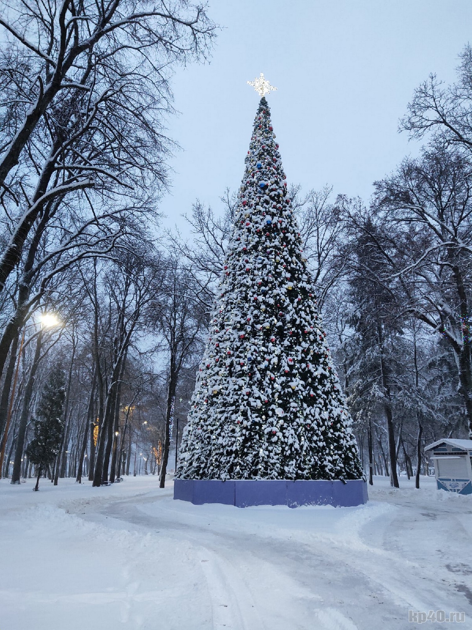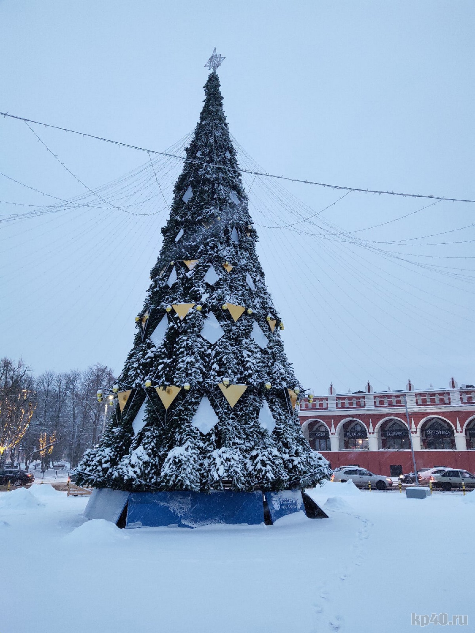 Главная елка Калуги покрылась слоем снега.