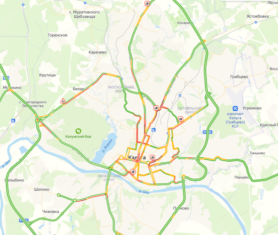 Во вторник вовремя на работу и учебу добрались не все жители Калуги. С 8 утра движение плотно стоит на улицах Ленина, Московской, Жукова, Глаголева, Зерновой, Генерала Попова, Кутузова, Набережной, Киевском проезде.