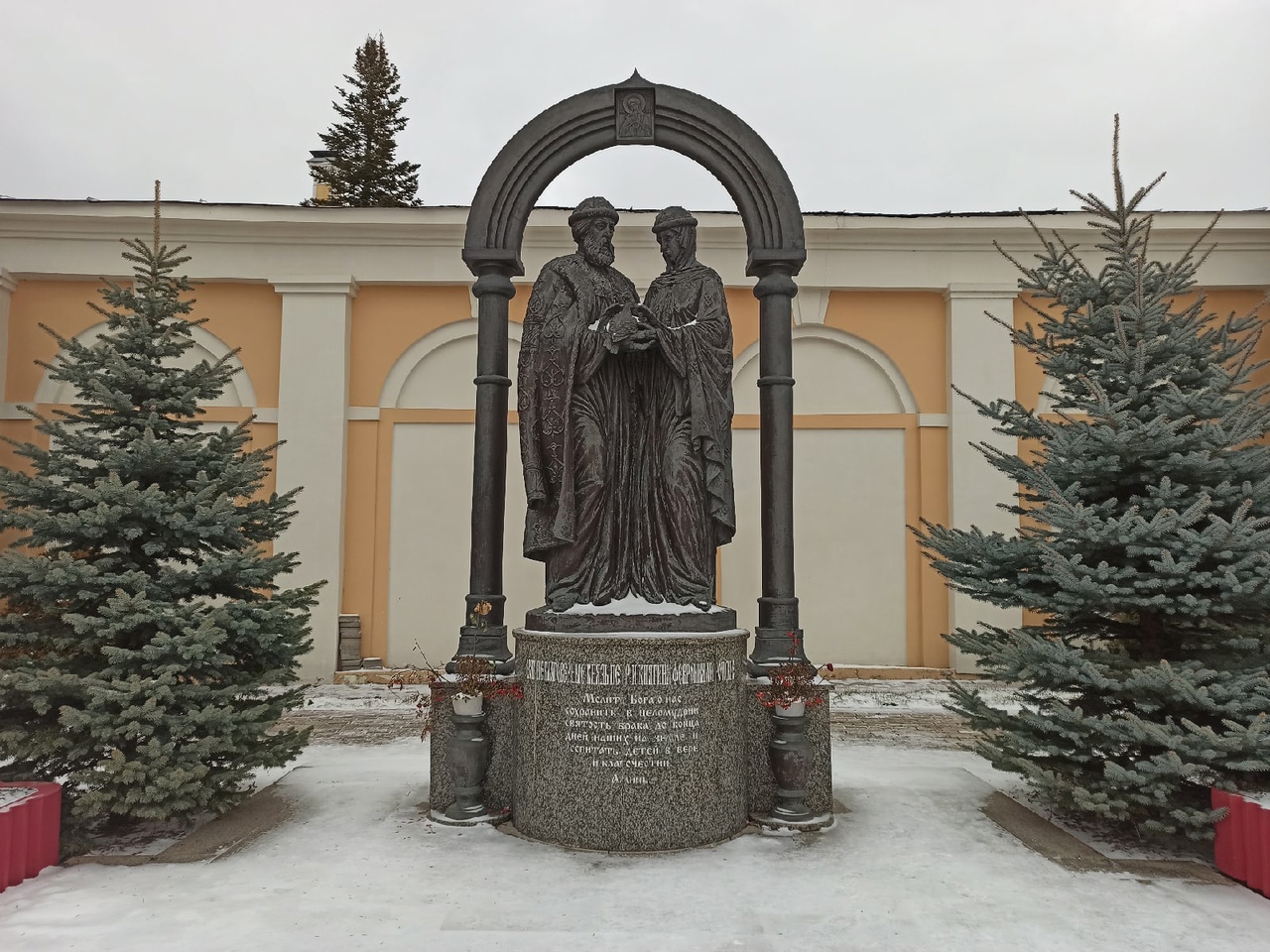 В России появилось множество памятников Петру и Февронии, олицетворяющих супружескую верность. Есть такой и в Калуге во дворе храма в честь Рождества Христова на улице Ленина.