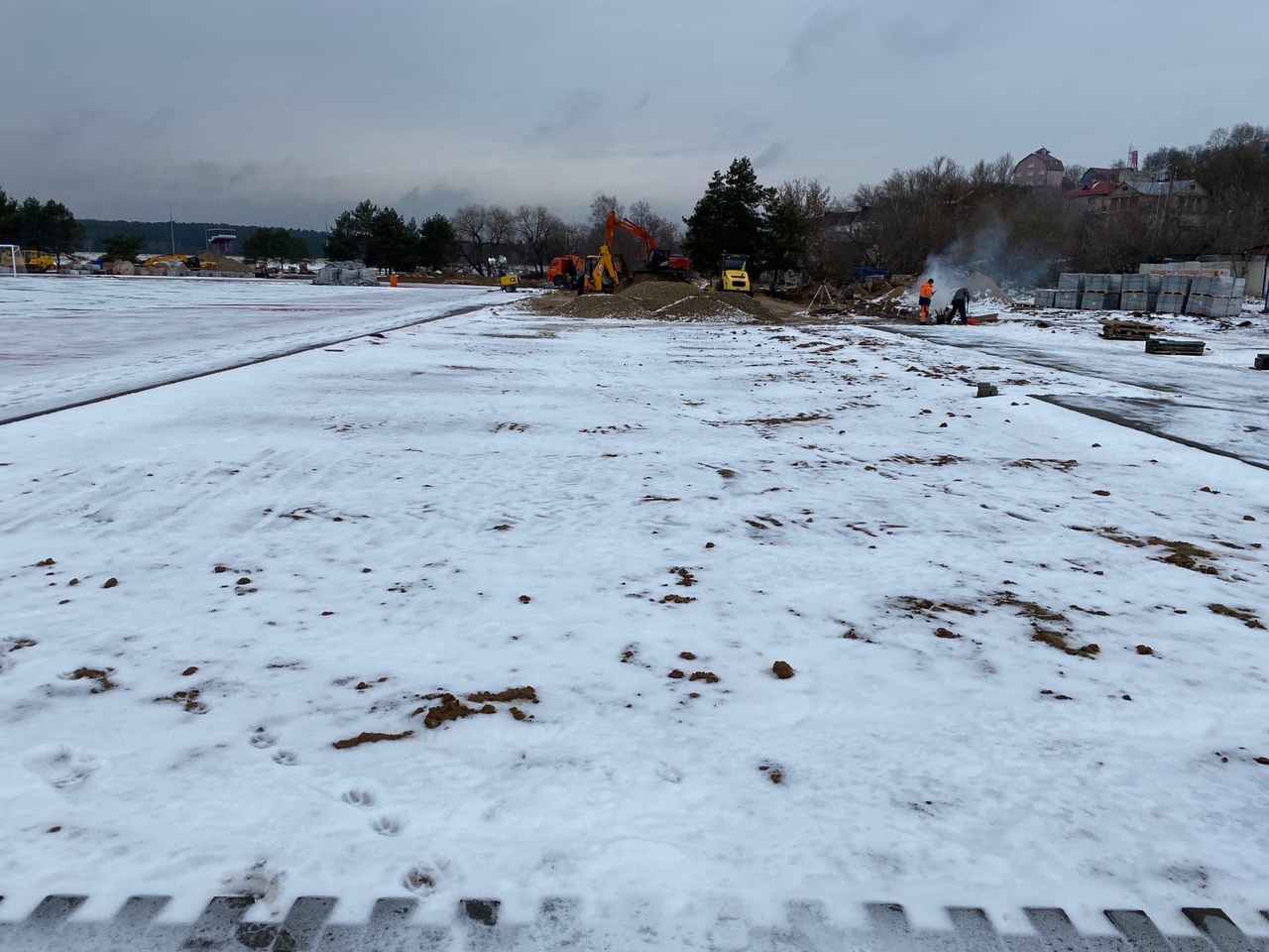 Как видно, работы по реконструкции и созданию спортивного комплекса в сквере Волкова продолжаются, но из-за погоды подрядчики не могут выполнить свой объем работы.