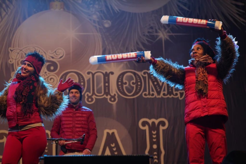 В Калуге на Театральной площади барабанщики Маракату растопили зиму зажигательными ритмами