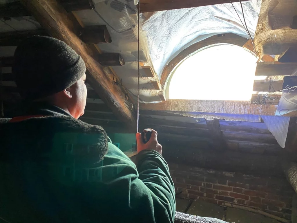 Вместе мы отправились на чердак, чтобы найти течь в трубе и устранить ее.