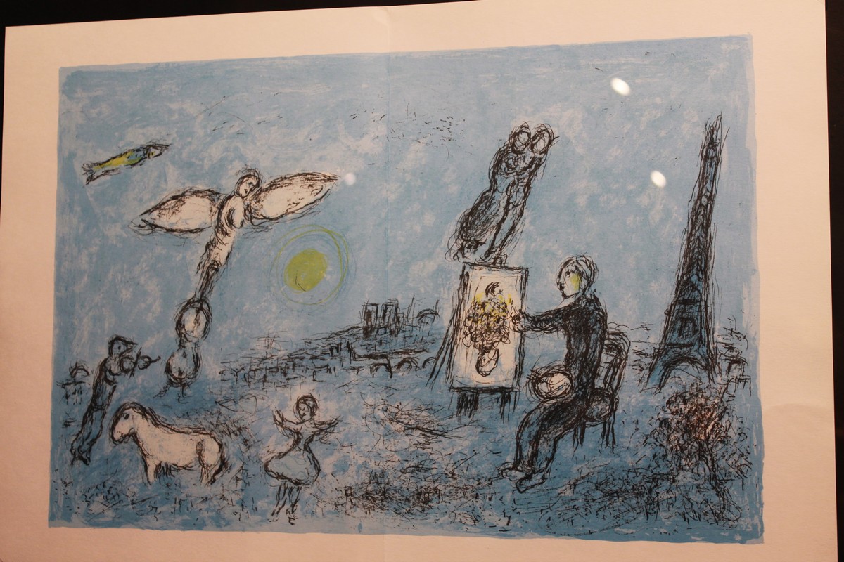 Работа Шагала из серии «И на земле». Художник говорит о гуманизме. Самолёты он превращает в голубей.
