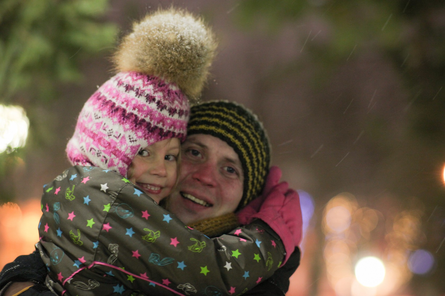 Студенты закрыли сессию и выбрались впервые на прогулку. Дети в восторге от выходных с родителями и снежных горок.